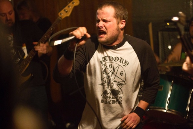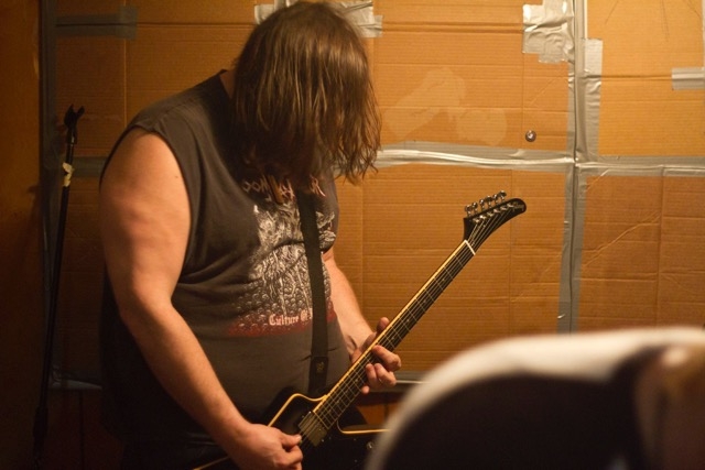 Like the previous bands, Steel Bearing Hand—a death metal band hailing from Dallas, Texas—plunged head first into their music with little banter from the vocalist. The guttural growl of Wyatt Burton rumbled through the sweaty air as the single floodlight filled the room with uncomfortable amounts of heat. That didn’t dampen the party, however—the crowd raged on. Guitarist Parker Turney’s meaty guitar tone enhanced his precise solos. Matt Preston destroyed his drums (figuratively speaking) and his impressive speed played a hearty role in the aggression of Steel Bearing Hand’s music. The band performed multiple tracks off their new self-titled album, which was for sale only on vinyl, and they concluded their set with a Discharge cover.