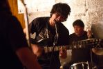The glass door just off the patio slid open in front of me to reveal local two-piece punk band Steve Buscemi warming the crowd up for a wild night in a wood paneled living room. Drummer Althea Best pounded away as Discoid Sam yelled and thrashed on vocals and bass. A semicircle formed in front of the band as Conrad Callirgos of Discoid A threw himself around the room, smashing bodies into the wall. Steve Buscemi’s songs were not long, some only lasting about 15 seconds. Appropriately, their set was quick and the Monday night crowd’s enthusiastic reactions led me to believe the band never overstays their welcome.