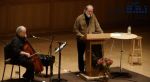 The theme Barks chose to stick with for the evening was the mystery of the beloved. To establish this, Barks started with the second part of the poem “Dissolver of Sugar,” repeating the last stanza: “I need more grace than I thought.” This poem, Barks explained, is about losing contact with the beloved, whether the beloved be our friend, teacher or someone else. He further explained that it’s impossible to talk about the beloved, so despite that being the theme of the evening, he admitted that him and Darling would fail at tapping the mystery. However, Barks explained, “It helps to have music nearby,” doting on his friend and cellist, David Darling.