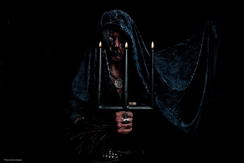 Instantly, the venue filled with the aroma of rotting flesh. The stage darkened for the most part, aside from some candles on a type of altar, with a drum kit adorned with animal bones. It looked like something out of a horror movie. The black metal intensity from the band was an interesting contrast to the rough black/thrash of D 666. The pounding drums and consistent speed only relented in between songs. The band is on tour to support their new record, Trident Wolf Eclipse.