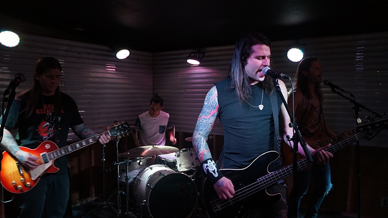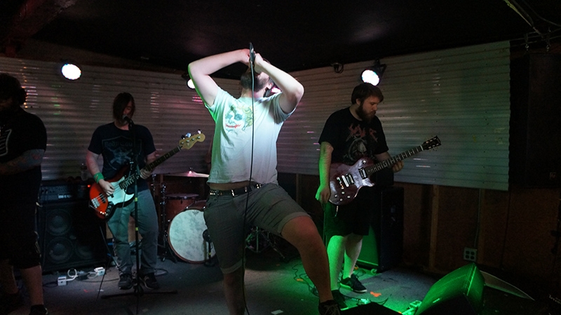 Wolf Blitzer came on and forever changed the way that I view extreme music. Over the years I have had the chance to see bands that play some of the most extreme music ever written—1349, Six Feet Under, Mammoth Grinder, etc. After Wolf Blitzer had left the stage, I walked away knowing two things for sure: the first is that there is no way I can make any band comparisons, as Wolf Blitzer’s music is truly original and nothing like anything I’ve ever heard before; the second is that what they play is easily the most musically violent sounds I have ever heard. Combining the rage of grindcore, along with the attitude of early-’90s hardcore, with dissonant chord progressions,and a vocal style that combines a traditional hardcore screaming and death growls, you are now in the ballpark of their art. As much as I’ve waxed poetic about the performances of each band, Wolf Blitzer took the cake. I genuinely thought that, by the end of the set, vocalist Nicholas Finch was going to need medical attention. From song to song, he would leap all around the stage, crawl on the floor, jump off the stage (joining the audience) and scream in the faces of the audience. His best antic was when he jumped at the front of the stage, grabbing the ceiling support beam, hoisted himself up and held himself to the beam with his legs while he proceeded to scream his vocals upside-down. Although vocally he sounded nothing like Stiv Bators, he certainly put his body out there much in the same way that made Bators a frontman legend. I was informed that although this was only their second show, they do have more shows upcoming along with an album they plan on releasing in the net few months. If you are looking for something brutal, violent, and an experience you will never forget, then I insist you check this band out.