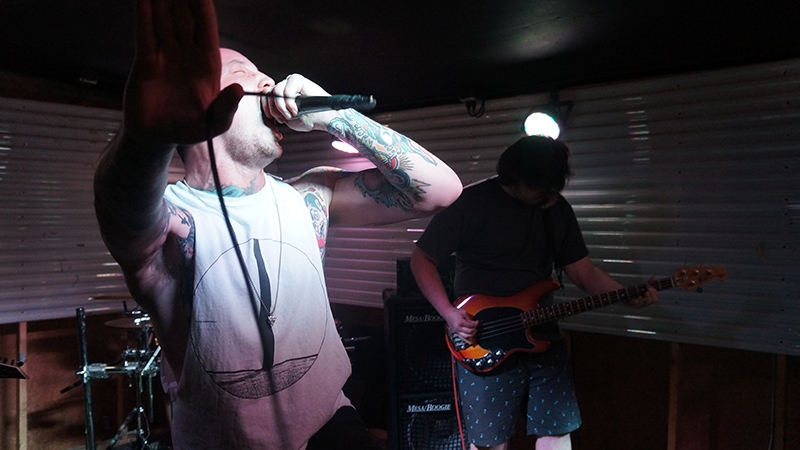 First up was CVPITVLS. Hitting the stage with a sound that is a cross between the hardcore elements of Born Against, Hell-O–era GWAR, and a hint of the ’90s heavy alt-rock band Perch, they were firing on all cylinders. What made their set exceptionally entertaining was vocalist Matt Bennett. Constantly moving around the stage with a type of crazed-nervousness, performing with a contorted and pained expression on his face, he definitely kept the crowd mesmerized. His vocals combined screaming and spoken phrases that, at times, were delivered with the same snarky sarcasm used by Henry Rollins. By providing such an amazing musical and visual experience, it was hard to not walk away a fan of this band.