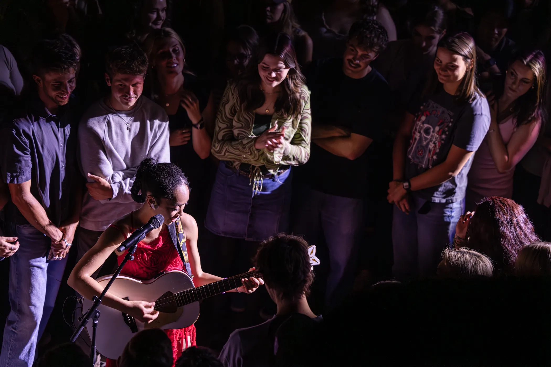 During this acoustic segment, Griff performed “So Fast” and “Everlasting,” but the highlight of the evening for me was the unreleased song “Head Under The Water.” This was more than a performance; it was an intimate exchange, with Griff strumming her guitar amidst fans who were as much a part of the moment as she was. The acoustics of The Depot, combined with Griff’s clear, emotive voice, filled the space with a warmth that felt both comforting and exhilarating,