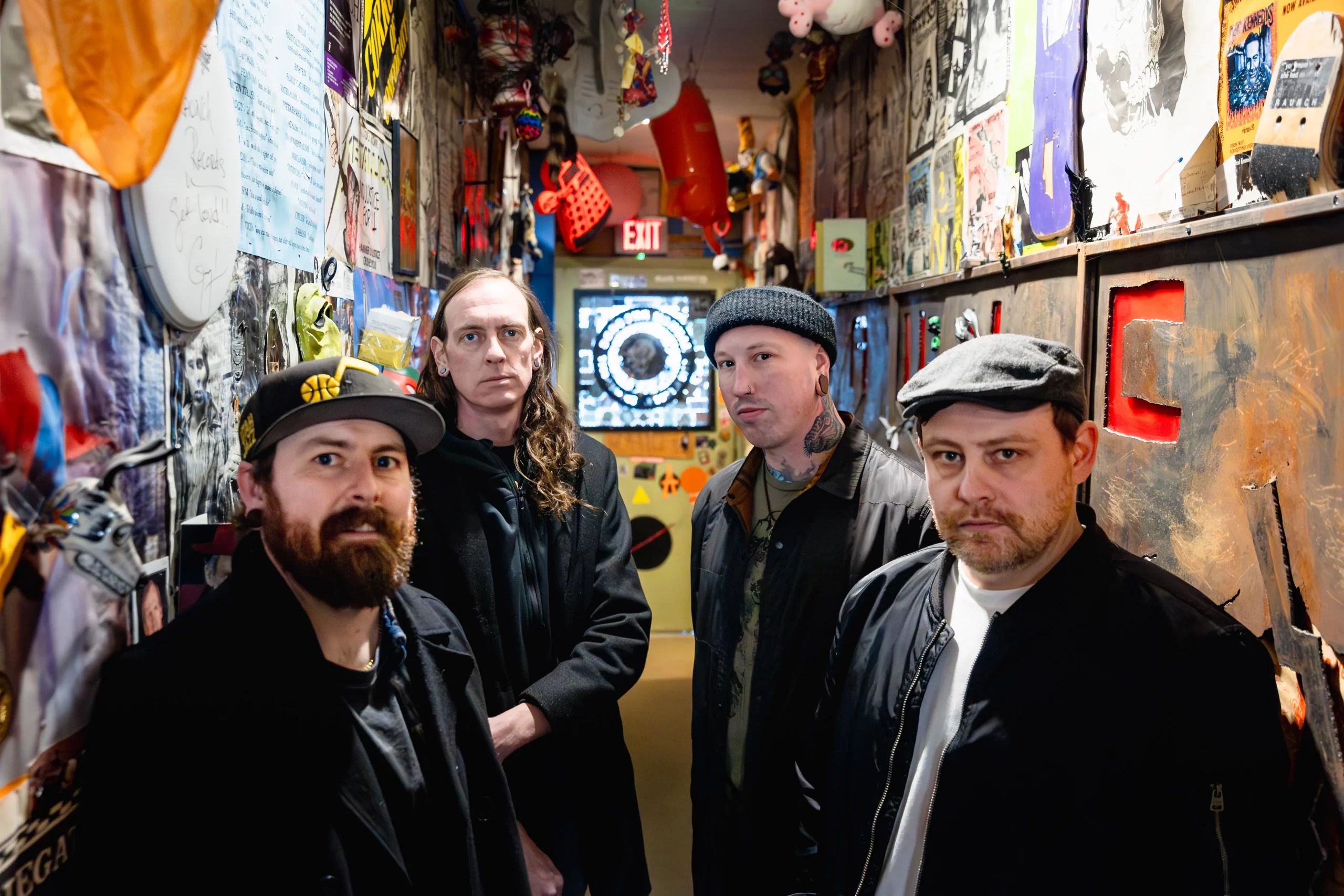 Founding members Matt Wiley (guitar) and Nicholas Bat (vocals) were familiar with each other from a distance from social overlap in the local music scene for nearly two decades before starting a project together. “Batty just reached out to me randomly,” Wiley says. It wasn’t long before bassist Darren Watts, a friend of Bat through work, signed on. (Watts coined the band’s name, inspired by a piece of drum hardware that looked akin to a Skyrim-esque weapon with which to bludgeon someone.)