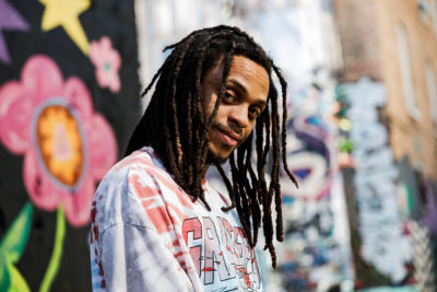Nostalgic90s, the hip-hop duo of cousins APaullo and LaneCobain3, do more than just make music. “I design clothes, I paint, I play instruments. It’s more of two artists syncing together creatively than two rappers sitting in a room thinking about what we’re gonna do to this beat,” Cobain3 says. Some of their many influences include Lil Wayne, OutKast and Q-Tip, and for singers, Whitney Houston and Janet Jackson.