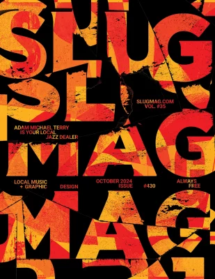 I love collage art and went all David Carson on it. I wanted to distress the SLUG MAG logo to the point of being almost illegible, but at the same time instantly recognizable.