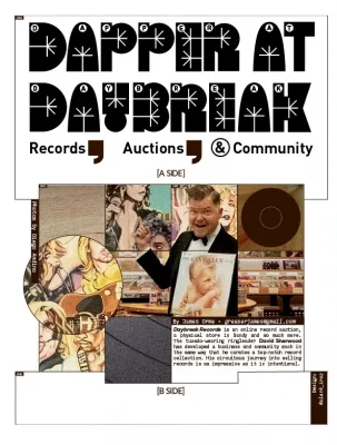 “When I had watched these other auctions, there was a very impersonal feeling,” says Sherwood. “These guys made very little effort to be welcoming or inviting. They looked like they just got out of bed and doing the auction was some kind of inconvenience for them, and I wanted to change that, so I thought, ‘What if I was the best-dressed auctioneer in the world?’ It might signal to people that they’re dealing with a person of quality and at Daybreak Records, they’ll get quality records. Elements like a wall full of records with secret discounts or prizes or giving away credit developed out of naturally just wanting to have fun with it.”