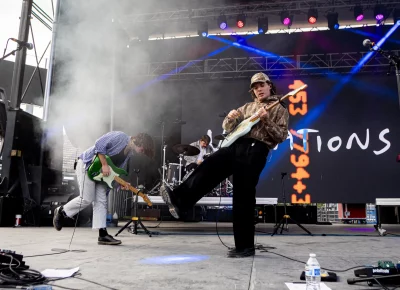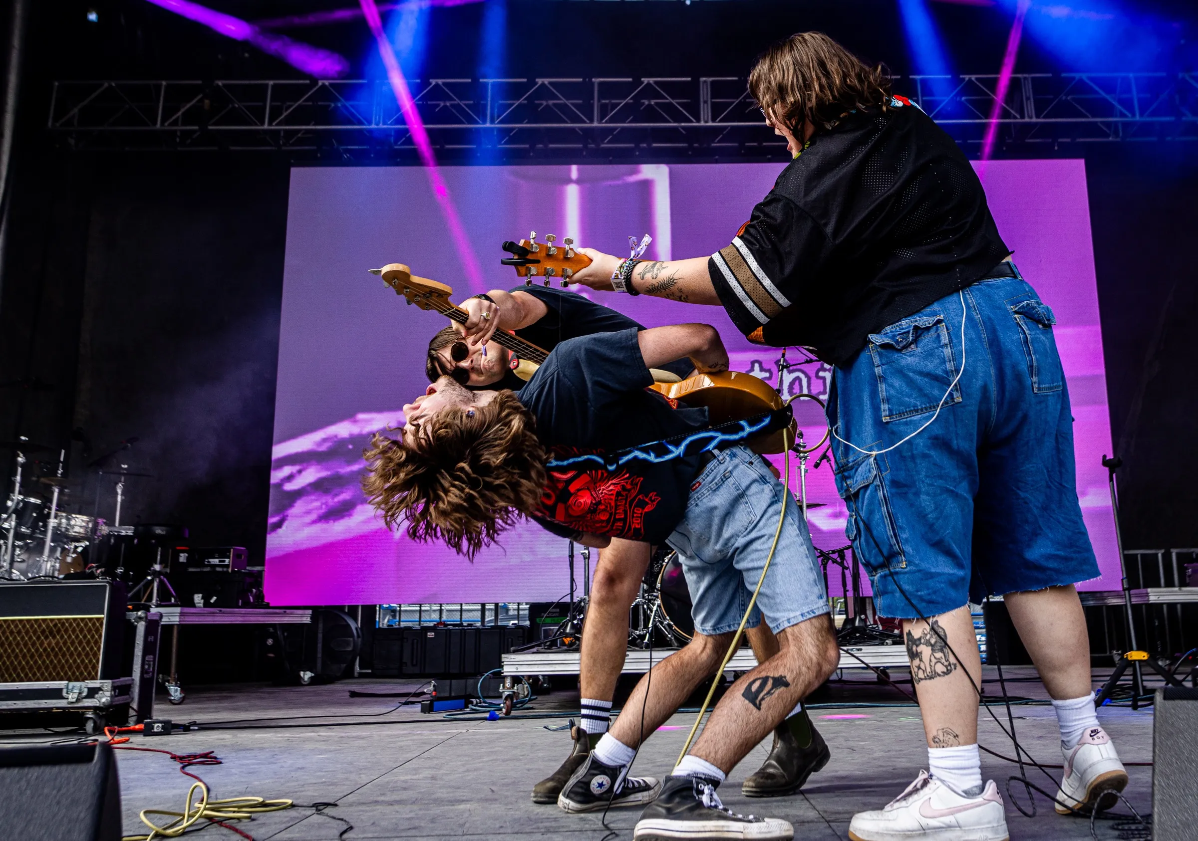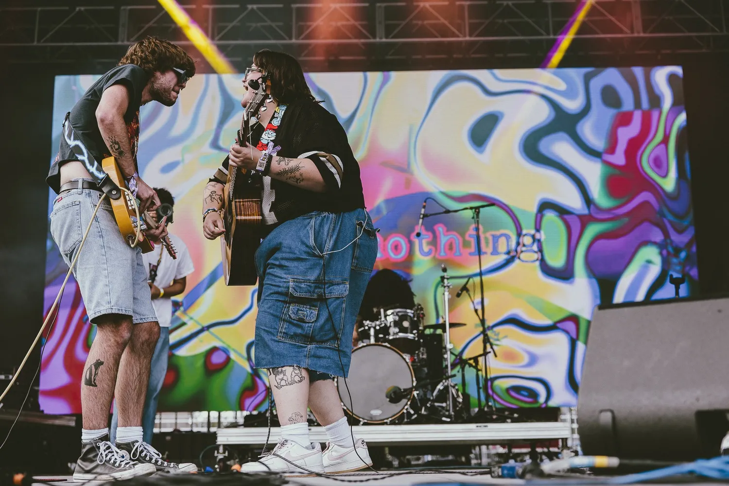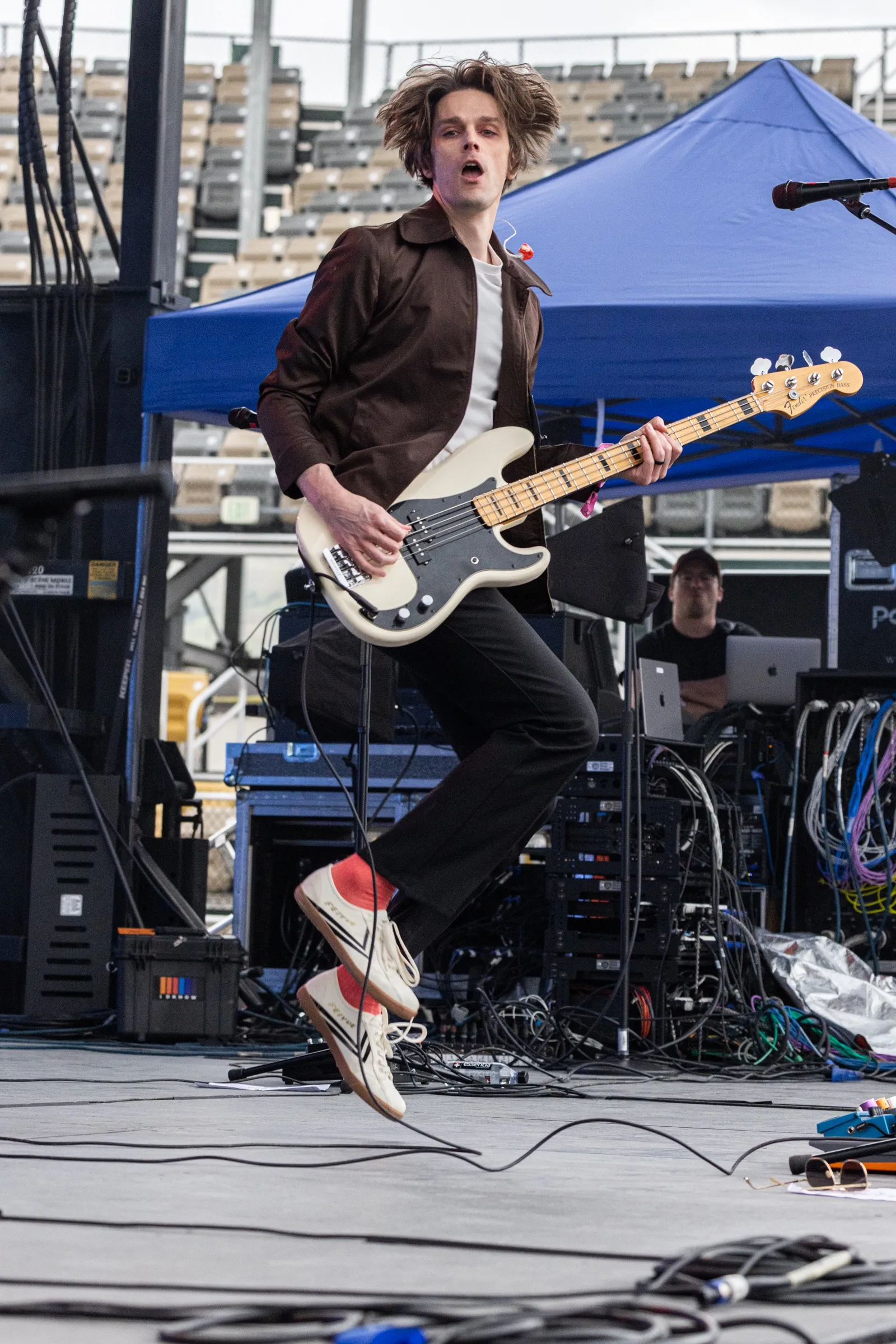 The party raged from Thursday, May 15 to Sunday, May 18 at the Utah State Fairpark. As for the weather, let’s just say it was as varied as the artists on the lineup. Food trucks and stands lined the walkways as far as the eye could see. Those needing a reprieve from the outdoor moshing could enjoy some good old-fashioned clubbing at the Silent Disco. And everyone knows that KBP is a magnet for indie enjoyers who appreciate a good vinyl, so it was the right call for 3hive Record Lounge to bring a literal van filled wall to wall with vinyls ranging from classic pop to anime soundtracks. There was also no need for the constant hassle of taking out your ID anytime you wanted an alcoholic beverage, since they provided 21+ wristbands. Honestly, the thought that went into providing amenities was impressive. The Take 10 Lounge provided shade, free Nutri-Grain Bars, dry seating and phone charging stations. All this praise, and we haven’t even gotten into the music.