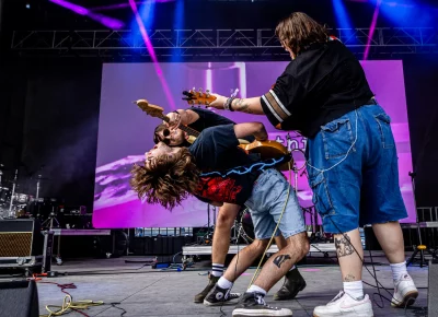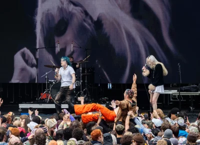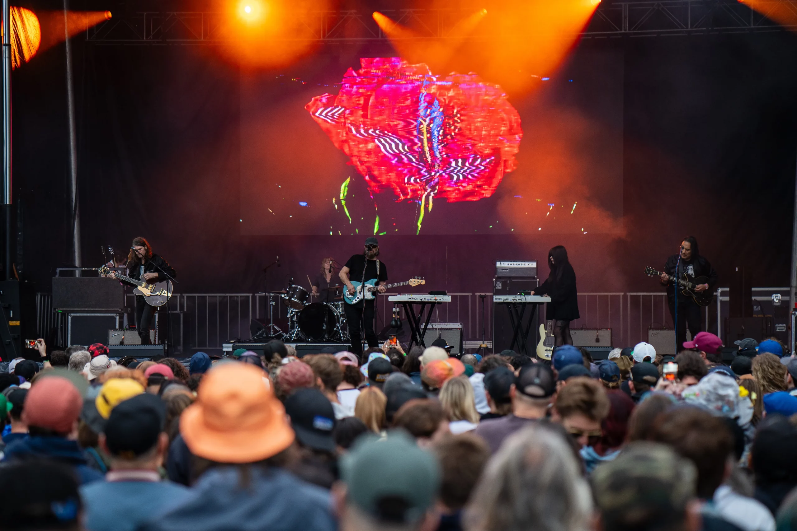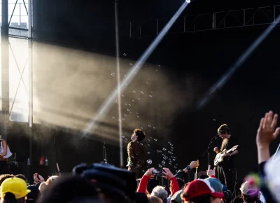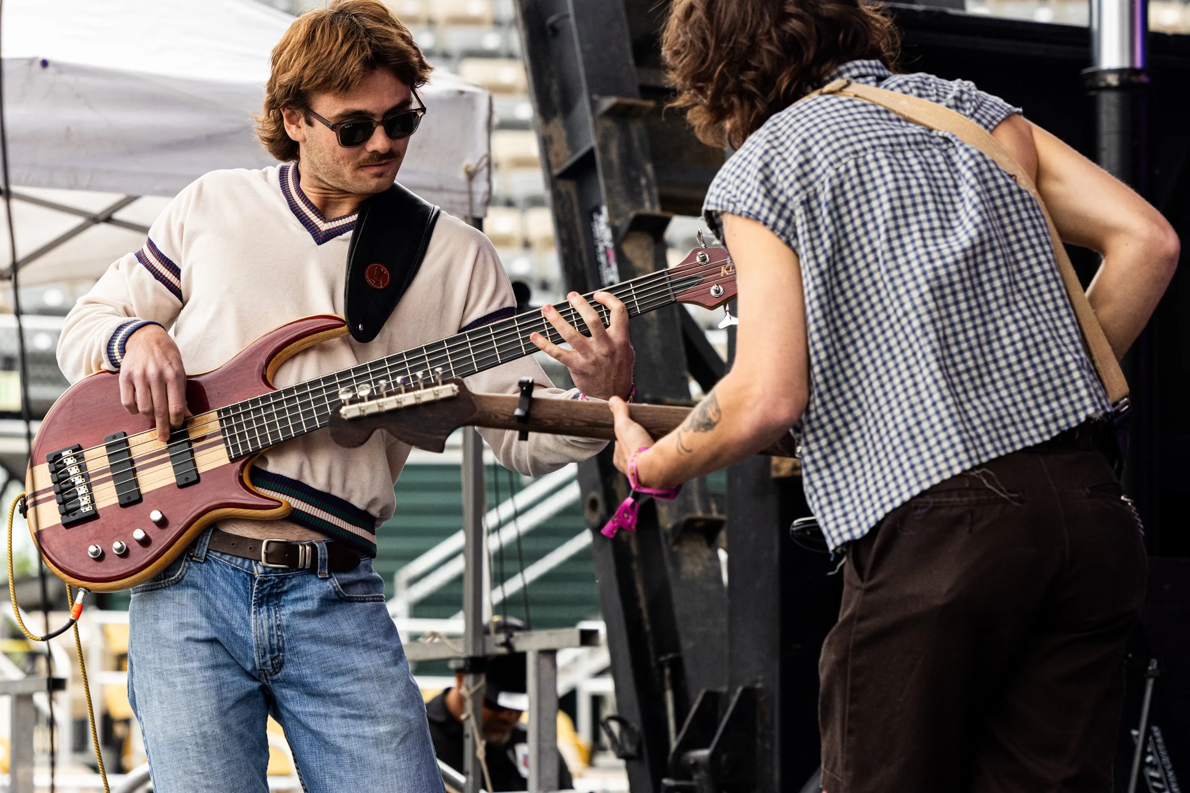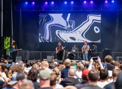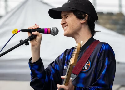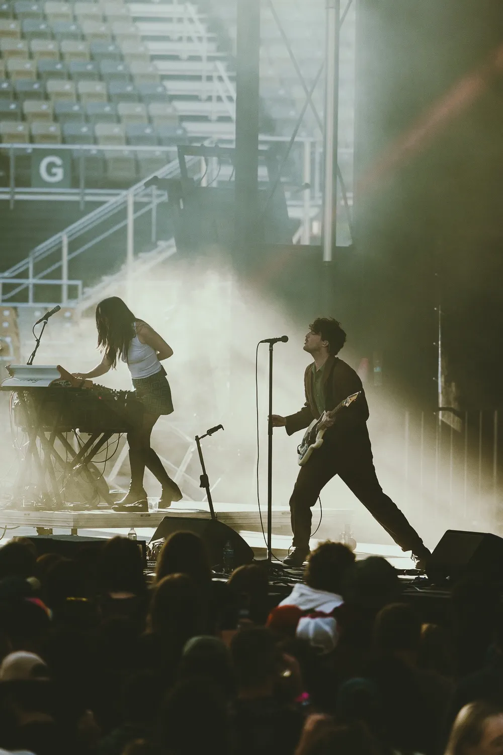 The party raged from Thursday, May 15 to Sunday, May 18 at the Utah State Fairpark. As for the weather, let’s just say it was as varied as the artists on the lineup. Food trucks and stands lined the walkways as far as the eye could see. Those needing a reprieve from the outdoor moshing could enjoy some good old-fashioned clubbing at the Silent Disco. And everyone knows that KBP is a magnet for indie enjoyers who appreciate a good vinyl, so it was the right call for 3hive Record Lounge to bring a literal van filled wall to wall with vinyls ranging from classic pop to anime soundtracks. There was also no need for the constant hassle of taking out your ID anytime you wanted an alcoholic beverage, since they provided 21+ wristbands. Honestly, the thought that went into providing amenities was impressive. The Take 10 Lounge provided shade, free Nutri-Grain Bars, dry seating and phone charging stations. All this praise, and we haven’t even gotten into the music.