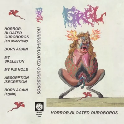 Stereophonically minimal and compositionally cerebral in comparison to other doom metal contemporaries, GRGL’s “Horror-Bloated Ouroboros” offers a glimpse into the group’s genre-bending compositional motifs. Picture the crushing doom metal sound you know and love, minus a good amount of the genre-defining muddy fuzz, and add a shifting song structure that is as enticing as it is delightfully unpredictable. The latter differentiates this release from a great many of GRGL’s contemporaries. The semi-modern doom metal custom of turning the fuzz pedal up to 11 and ripping the nob off is ignored, and the stereo space usually occupied by errant feedback and grime is scrubbed clean, leaving room for clearly defined growling vocals and enhanced tonal fidelity showcased through the daydream-fantasy-sequence-inducing guitar solos present in the recording. All in all, I’d say “Horror-Bloated Ouroboros” is a very tasteful tonal homage to retro doom metal with a compositionally contemporary spin that makes it a must-listen for anyone infatuated with the genre. —CJ Hanck