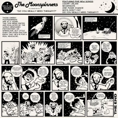 On “Do You Really Need Therapy?” the Moonspinners deliver danceable melancholia in 3/4 time. The song opens with a sparse drum beat and a lone voice muttering, “Is that what he said, or is this just another bad day?” This barebones dejection is reminiscent of Nirvana’s “Something in the Way,” though the simplicity doesn’t last long. From the first chorus, the single blossoms with aching guitar solos, Milk Carton Kids-adjacent harmonies and a tambourine losing its shit. Between this bluesy vibe and lyrics bemoaning the inefficacy of psychoanalysis, “Do You Really Need Therapy?” is a dirge for when the walls are closing in and nothing helps. Who among us hasn’t been there? The single appears on an eponymous, five-track EP you can stream on Bandcamp or Spotify. And if you need some on-theme reading material, the cover art is a cheeky comic in which the band frustrates a psychologist who attempts to analyze them. —Joe Roberts