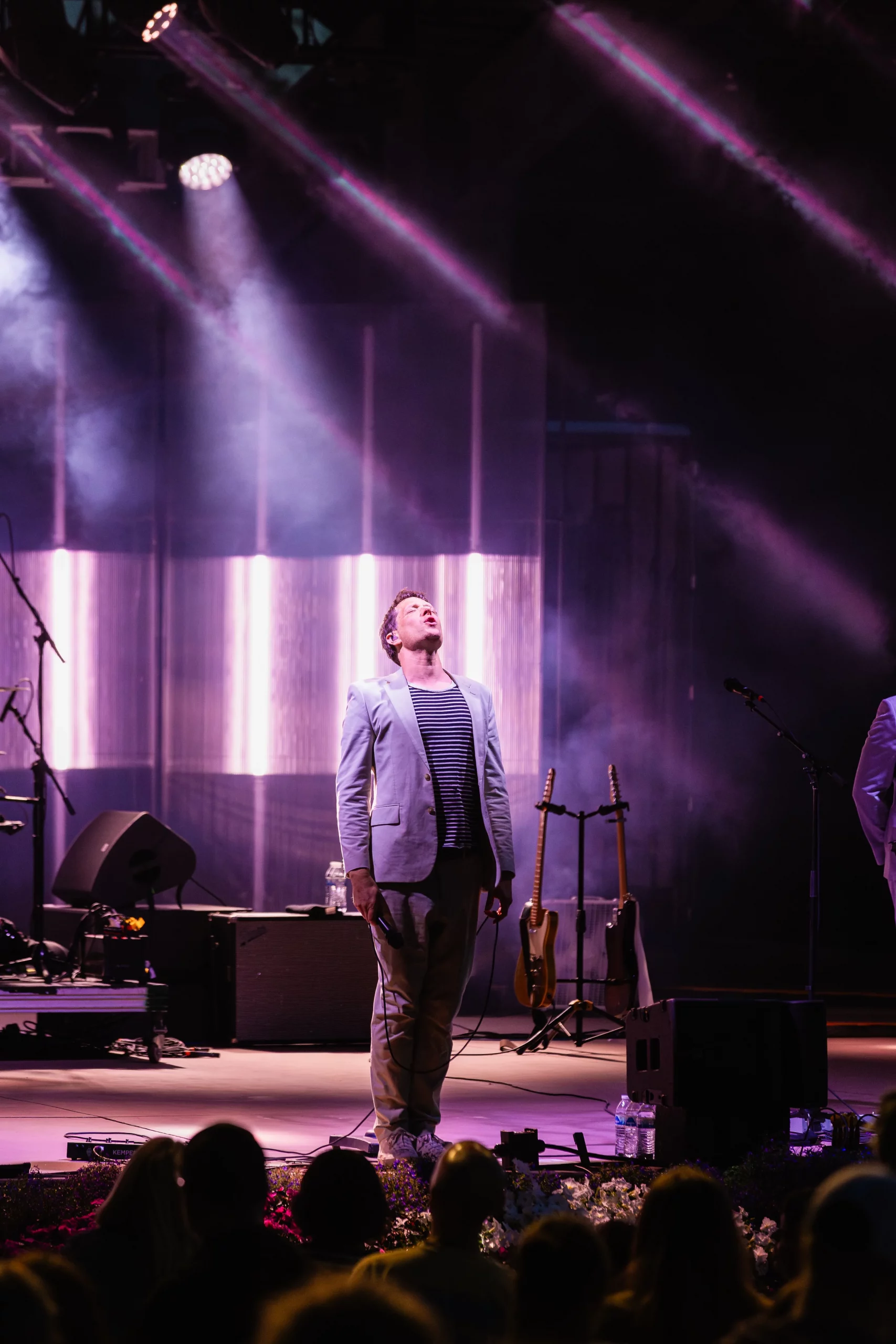 Finally! A cooler evening with an outdoor show at a beautiful garden venue. OK Go visited the Salt Lake Valley again with a stop at the Red Butte Garden Amphitheatre. Supporting musician Bartees Strange joined OK Go and started off the show while attendees settled in, grabbing a T-shirt, a slice of pizza or a drink from their own coolers as they took seats and awaited the music.