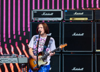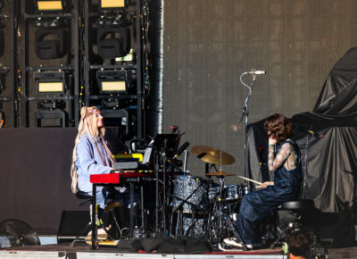 Bag checks, merch lines and $14 beers await the masses making it to their designated areas. As the sun slackens, duo Domi and JD Beck starts it all off. The keyboard-and-drums pair do quick introductions and get right to it with intense jazz tracks. As they finish a song and prepare for the next, they thank the Red Hot Chili Peppers for having them come for this stop on the tour. JD Beck comments, “It should be illegal for the sun to be this bright,” as the stage gets the full brunt of the sun beaming down on the venue. Passionate jazz continues as attendees get their beverages, and just as soon as the music started, the sun heads down and they finish up their set.