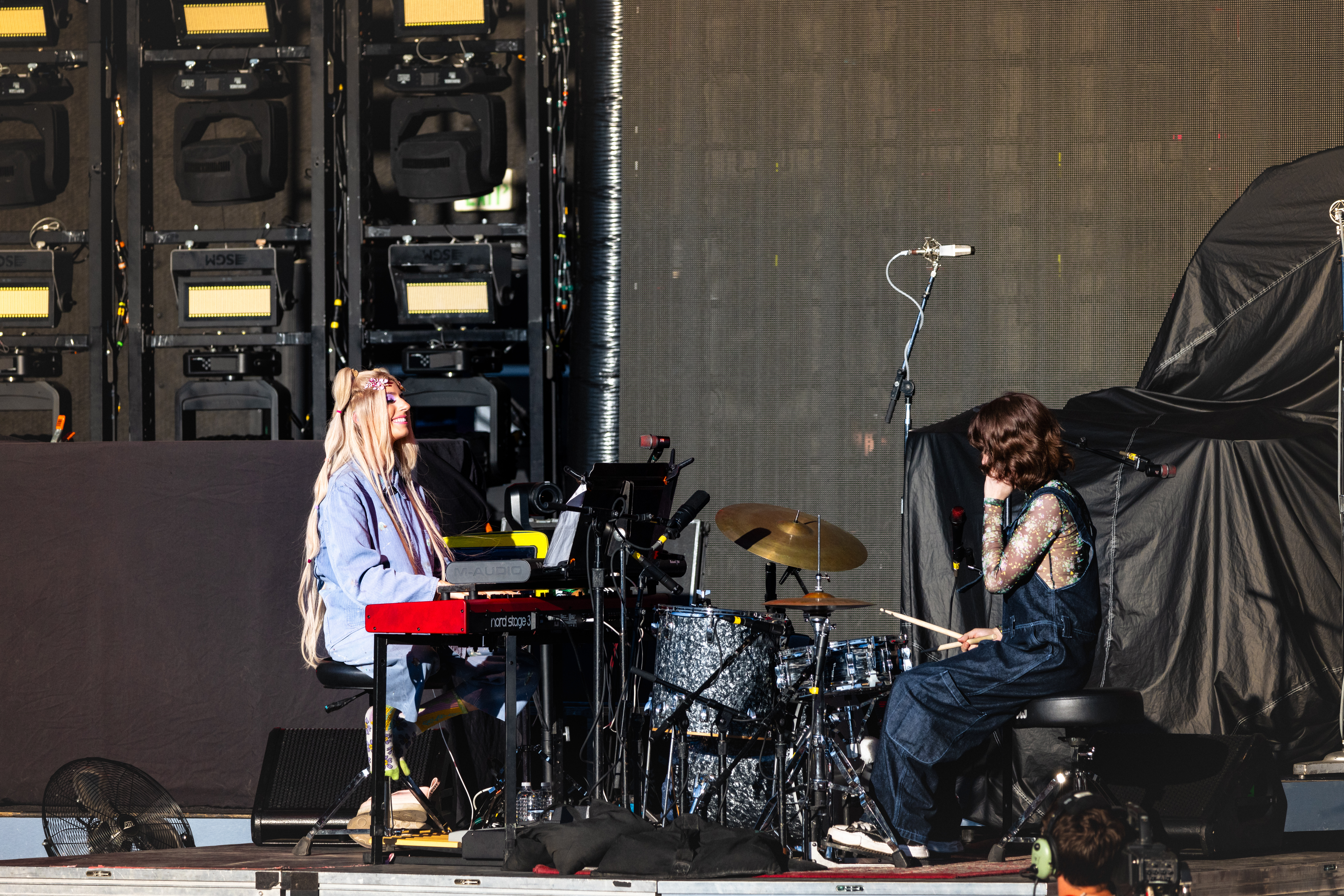 Domi and JD Beck comment on the blaring sun during their set at the Utah First Credit Union Amphitheatre. Photo: @lmsorenson