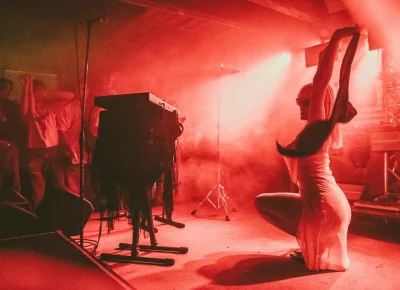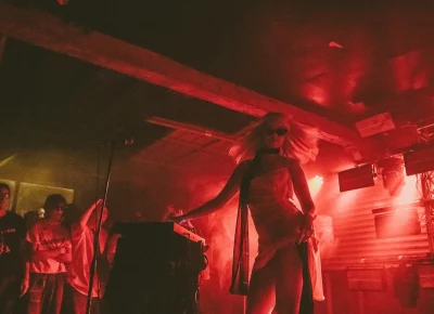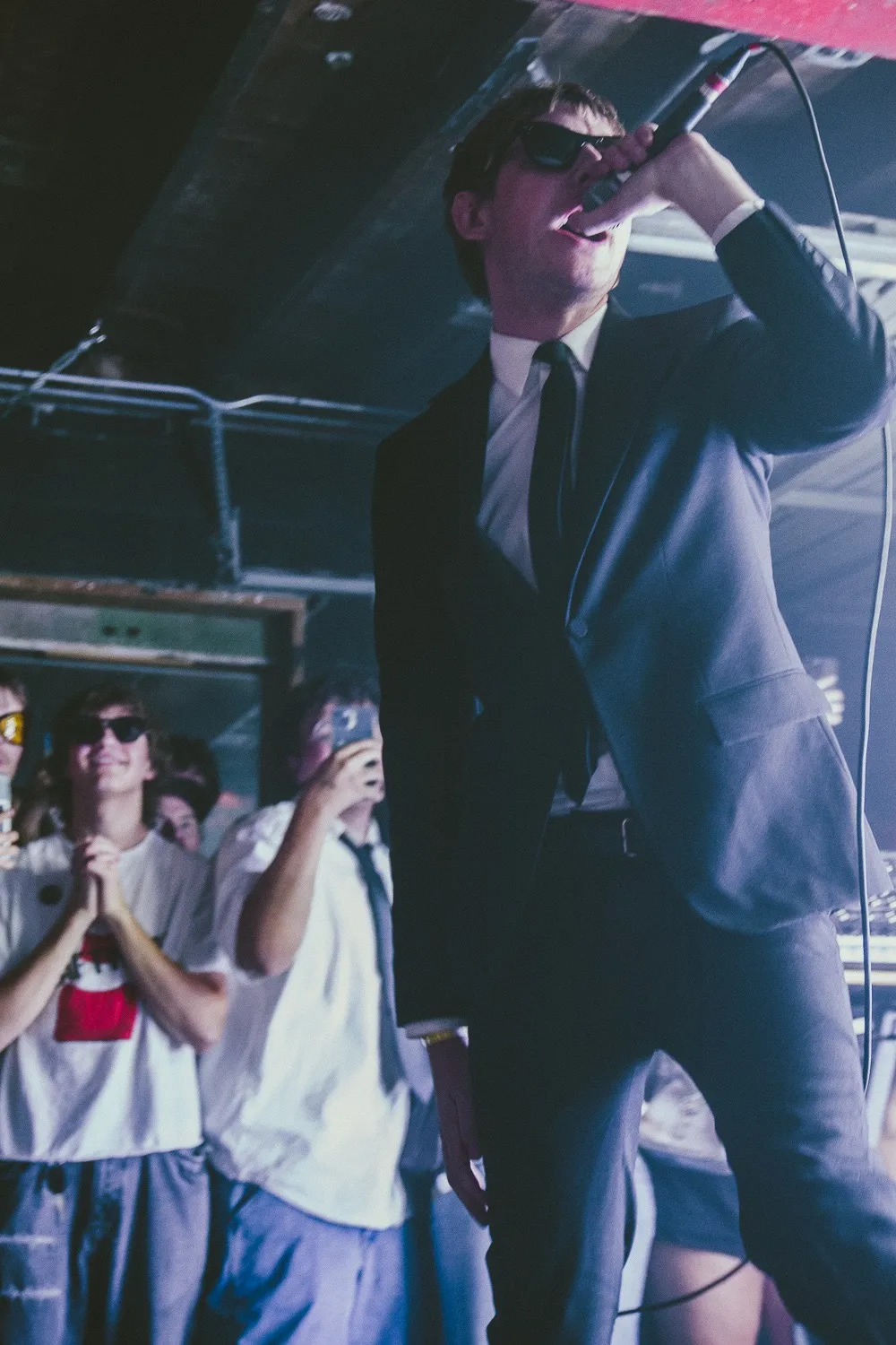 By the time our headliner slinked onto the miniscule stage, everyone was aching to know what exactly was wrong with New York. “It’s just rock and roll, you won’t die / You can’t spend your whole life inside,” The Dare declared into the microphone, kicking off his first song of the night, very perfectly titled “Open Up”. As blinding lights strobed behind him, he contorted his body into flailing dance moves, the screams of his adoring fans bleeding into the clash of the hi-hat he smashed above their heads. Soon, the signature blazer would come off and the sunglasses would fly off his face to reveal eyes squeezed shut in concentration. It was unhinged, uncoordinated and still somehow very sexy? But maybe that was just the $5.99 perfume clouding everyone’s head.