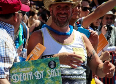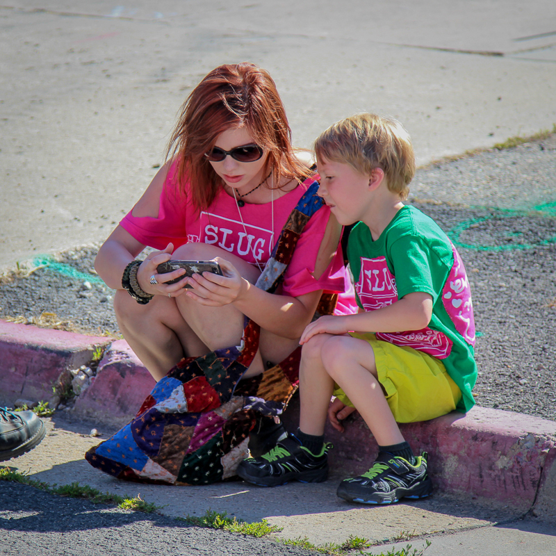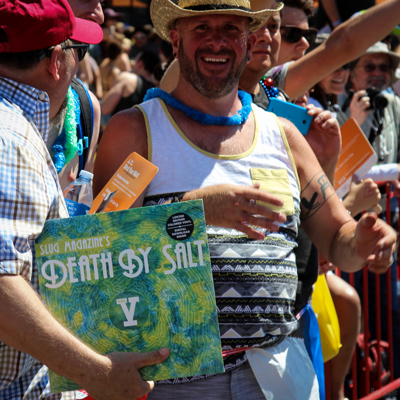 SLUG Magazine’s bevy of bikers and bumblers passed out magazines, sunglasses, stickers, enameled pins and Death by Salt V compilations. Vinyl drew the biggest reaction from the crowd—not that kind of vinyl, Death by Salt V on vinyl! It’s the fifth in a series of vinyl releases highlighting the best local music Salt Lake’s underground scenes have to offer.