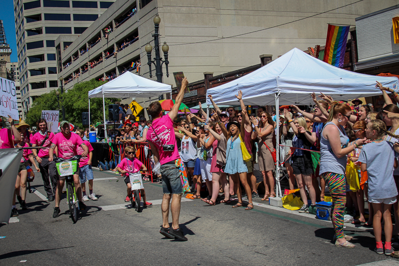 The 2016 Utah Pride Parade painted 200 South with a colorful palette of enthusiastic support for LGBTQ+ Utahns as supporters marched under a proud rainbow umbrella. The three-day Utah Pride Festival culminated in a Sunday morning parade filled with dozens of floats for thousands of spectators.