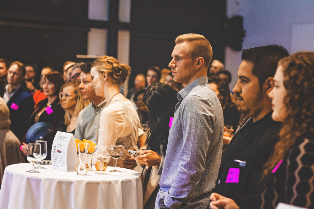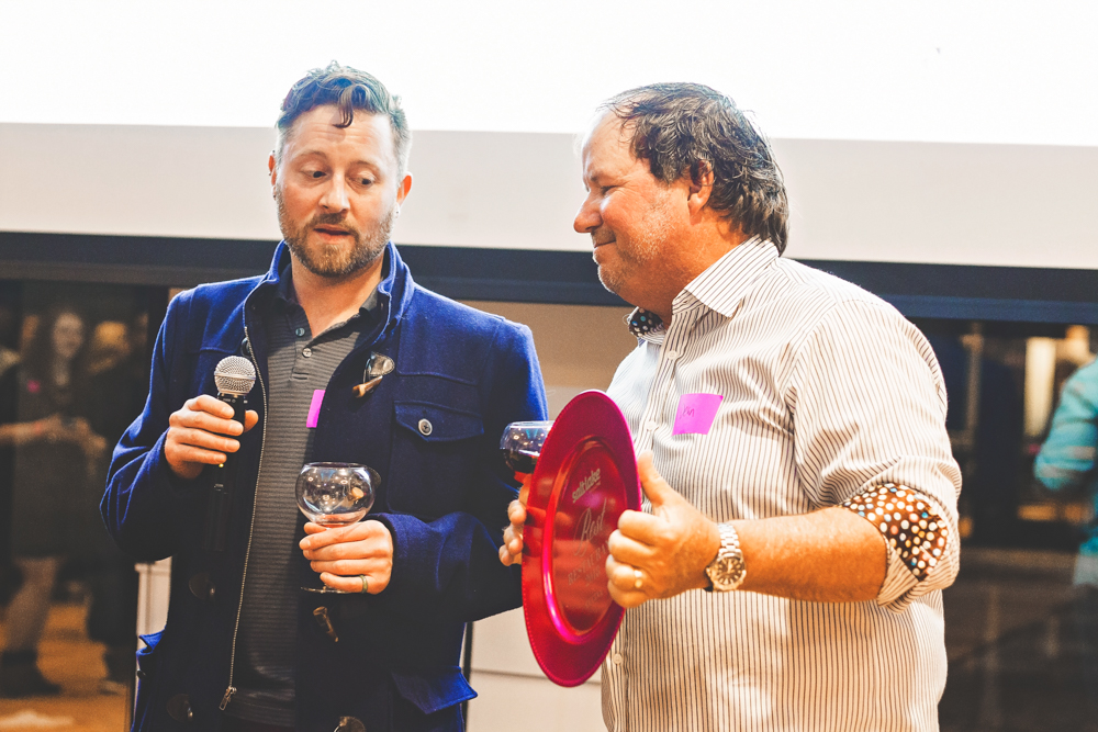 Thanks to Vine Lore, our wine glasses await our selection as we enter the awards ceremony. Photo: Talyn Sherer
