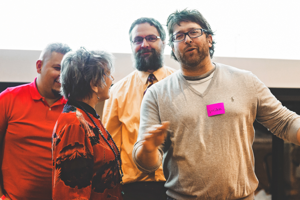 Moudi Sbeity talks about Laziz Kitchen’s collaboration with the IRC and their efforts to feed new refugees arriving in Salt Lake. Photo: Talyn Sherer