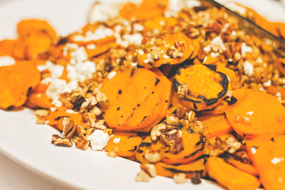 Cuisine Unlimited provided us with some charred sweet potato rounds topped with feta, pecans and puffed farro. Photo: Talyn Sherer