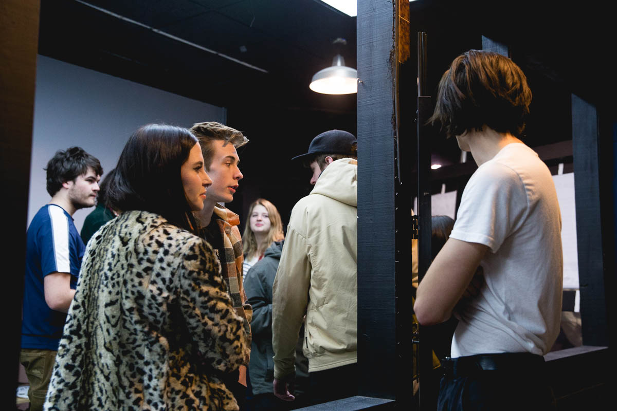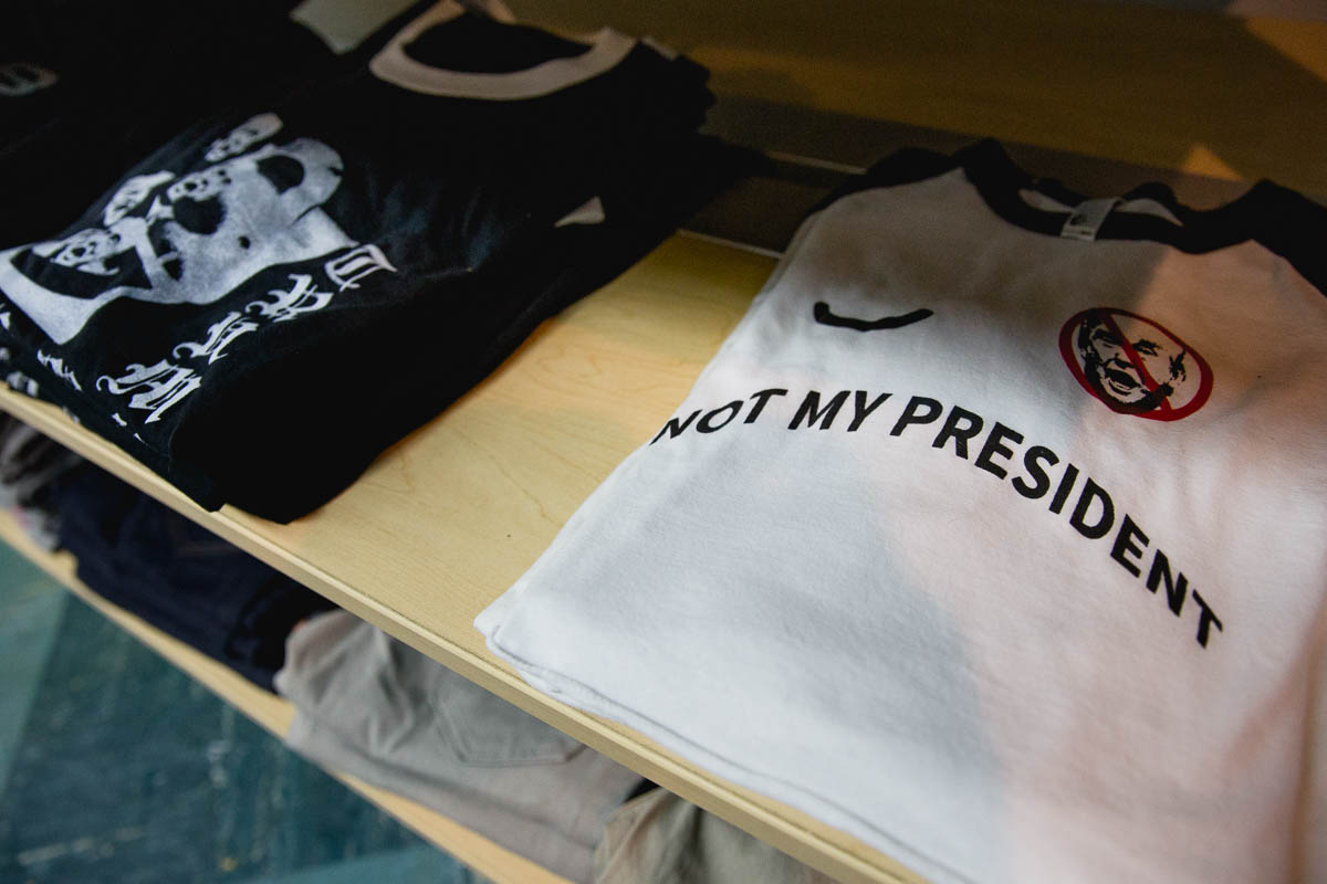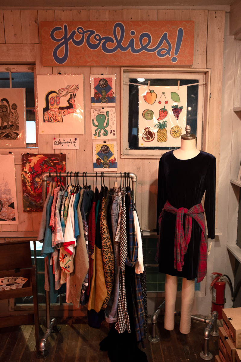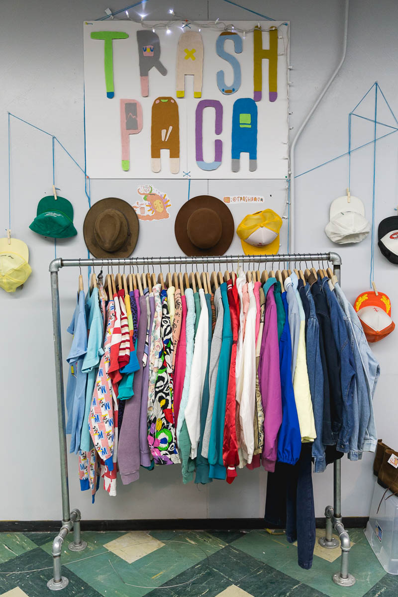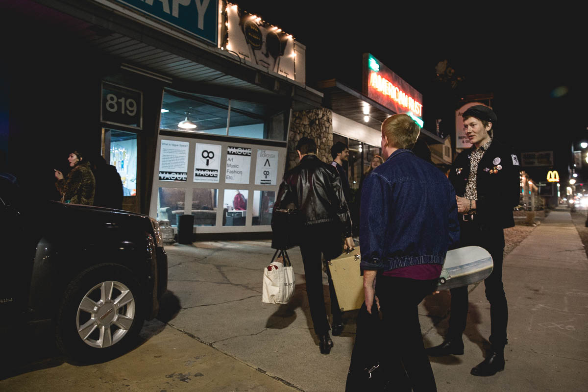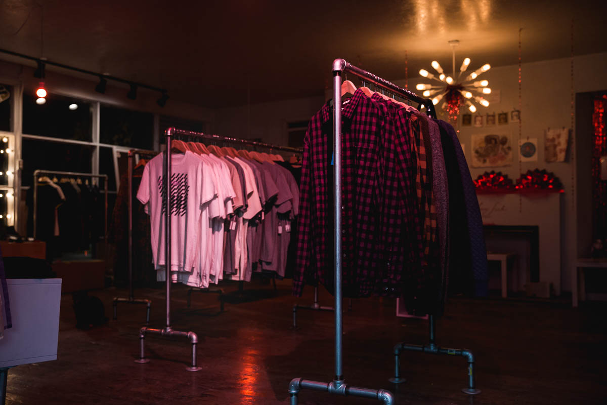 This mission rings true with the collaborators that inhabit this space, including Daley’s ClothingDiabolical Records, Velo City Bags and T R A S H P A C A, which sold merchandise and wares ranging from shoulder bags and boots to records and vintage, plaid shirts. Located at 819 E. 2100 S. in Salt Lake City, Vague Space welcomed visitors to listen to local music, check out the store and grab a cookie (courtesy of Velo City). Visitors could mingle upstairs while browsing new clothing and the local art lining the walls, or head downstairs to the basement for the evening’s music by DJs Nix Beat and Eric Jenson as well as bands Rebel Rebel, Los Yayaz and The Boys Ranch.