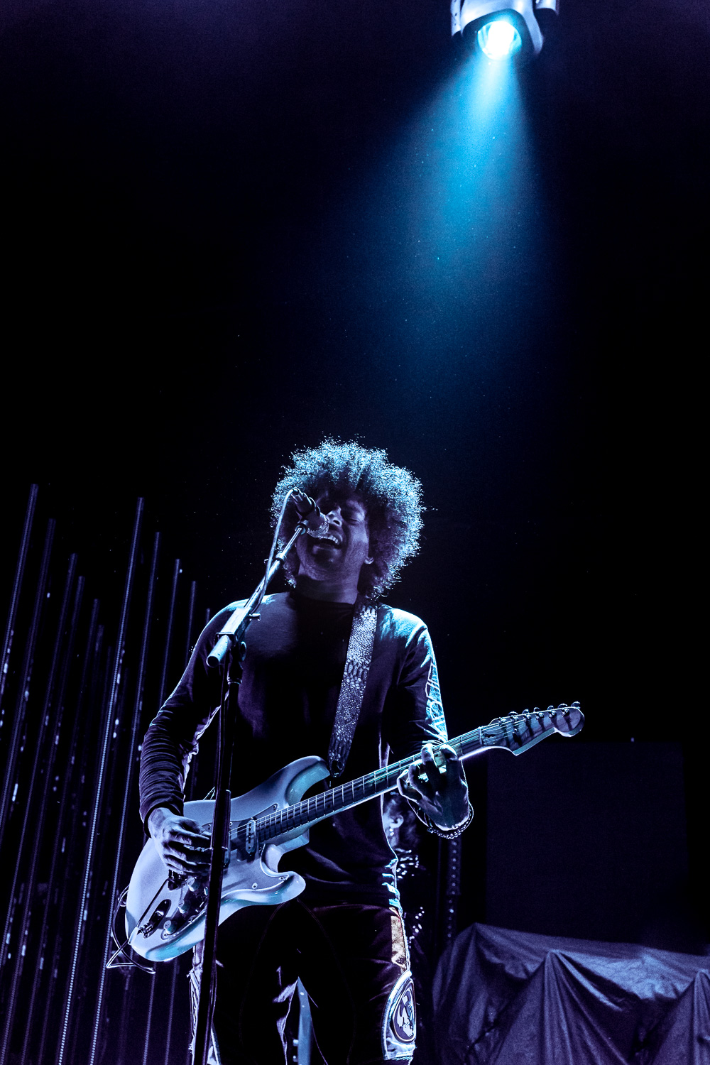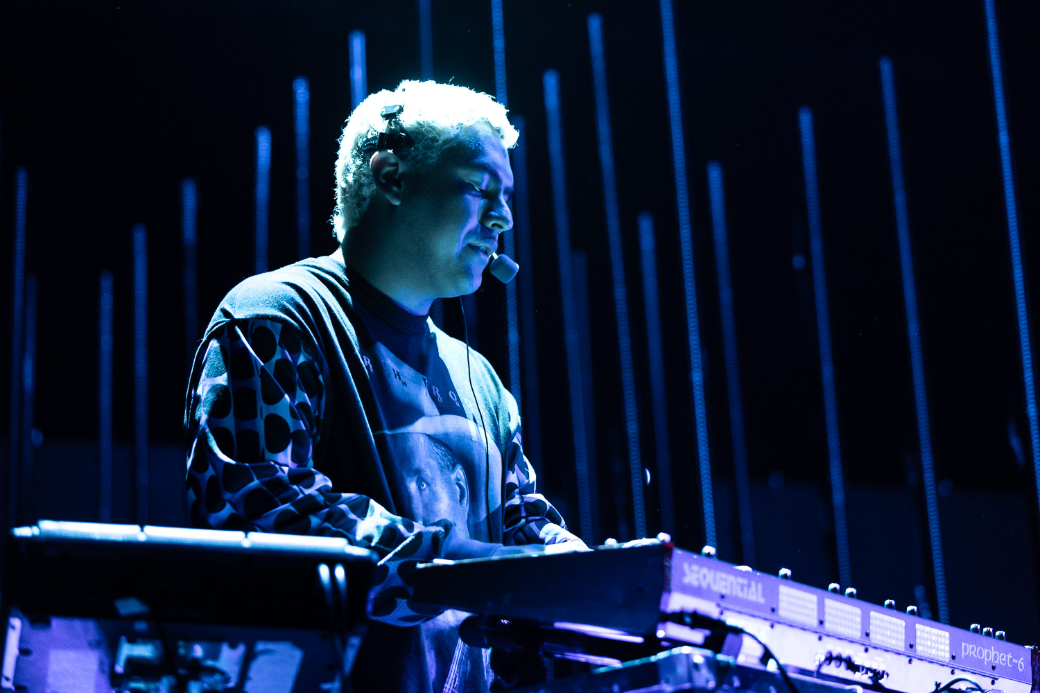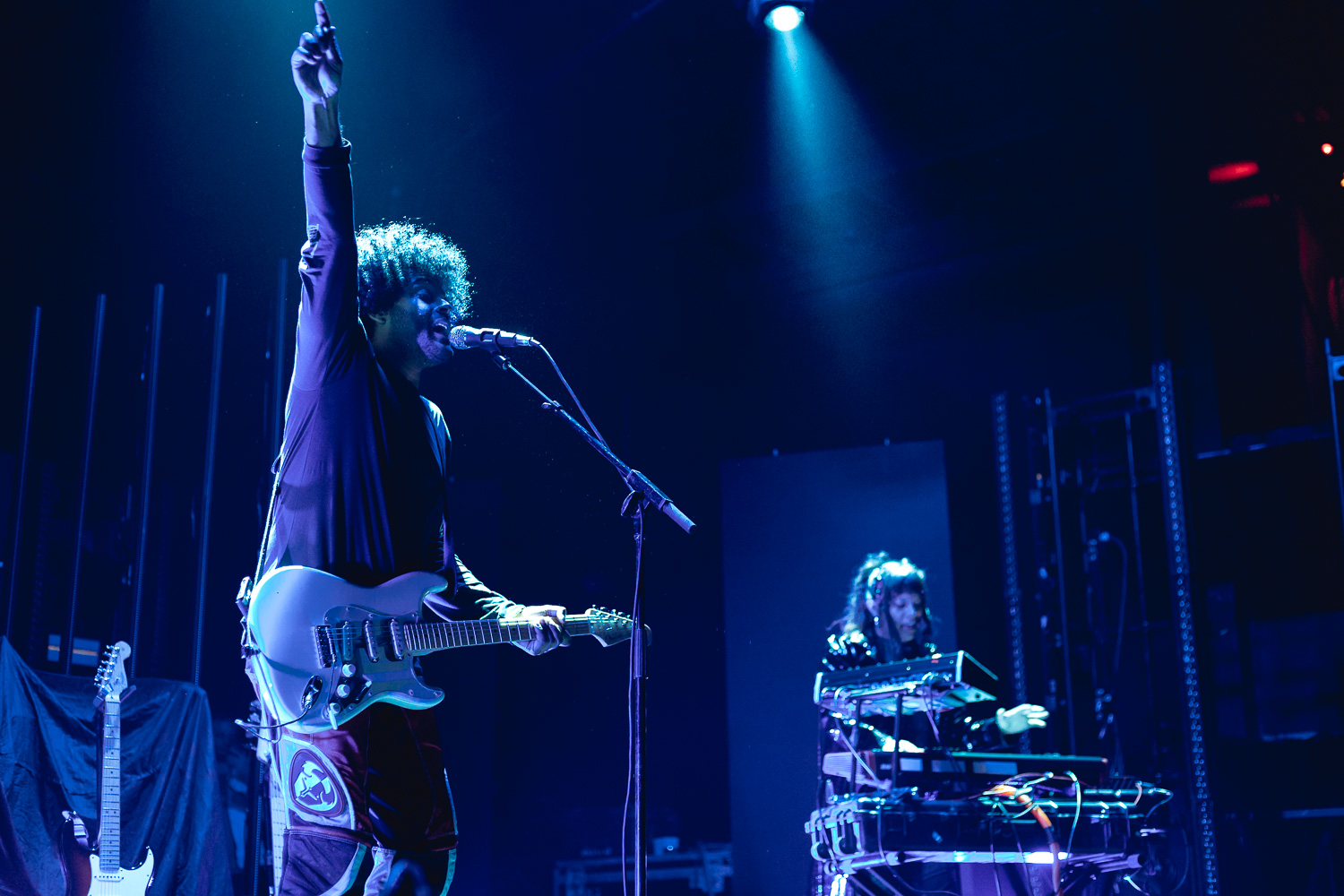 First up to the stage, George Lewis Jr., aka Twin Shadow, takes center mic with a guitar along with his supporting keyboardist and drummer. Twin Shadow plays to a building crowd and fills the venue with a style reminiscent of the synth pop wave of the 1980s mixed in with poppy, funky and sexy vibes. After Twin Shadow tell the audience that he is happy to be back, having played four years prior, it’s easy to see that the feeling is mutual based on the amount of hands in the air and feet off the ground.