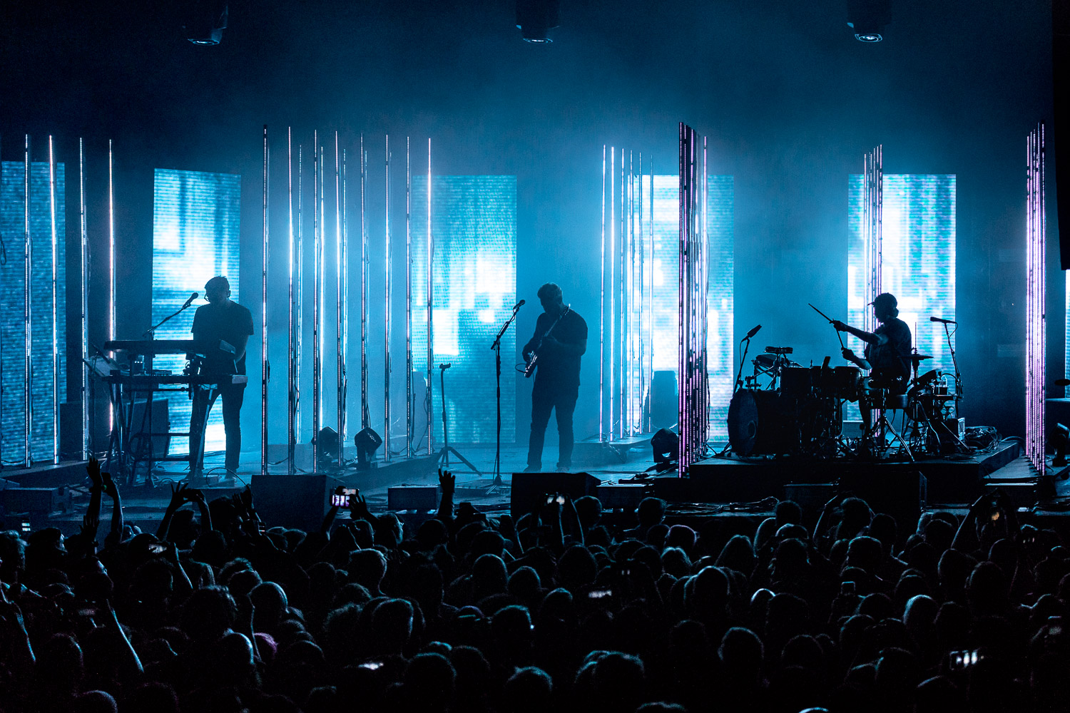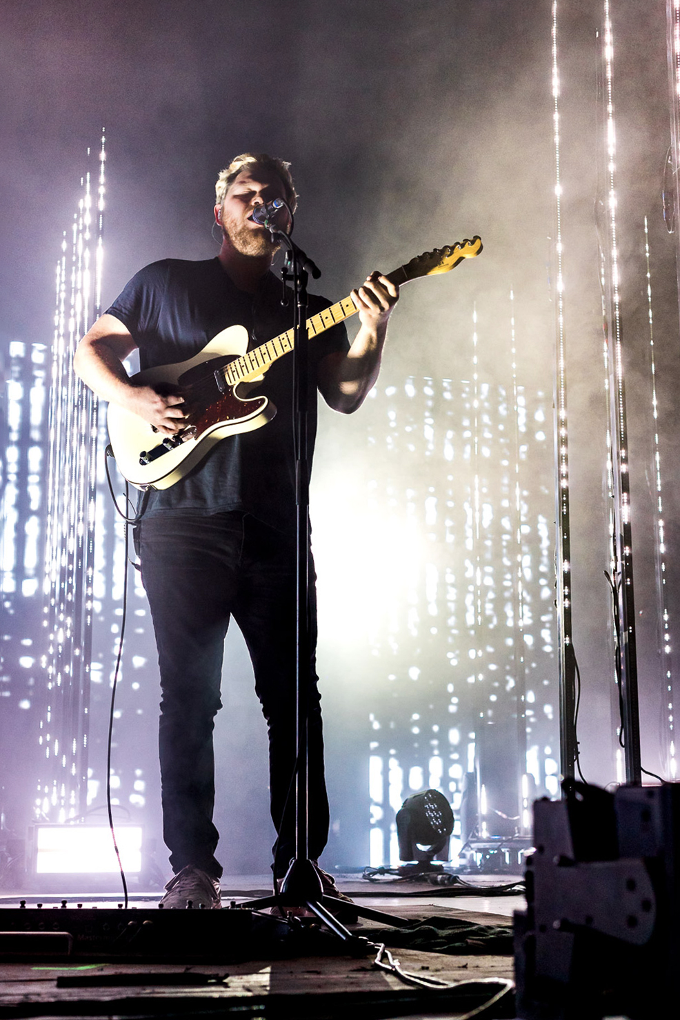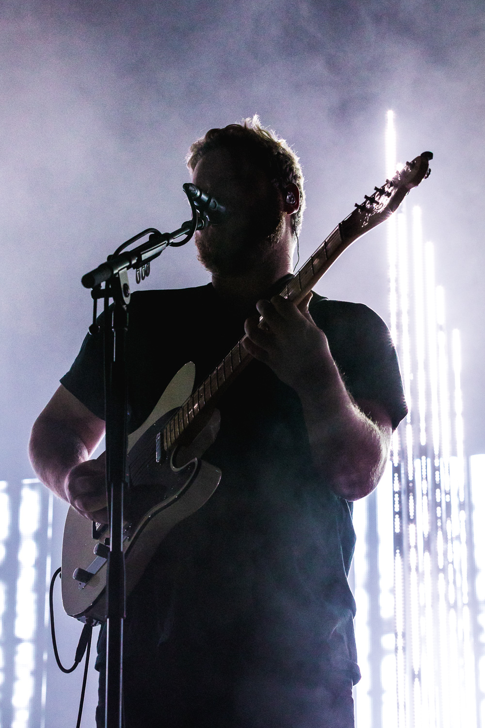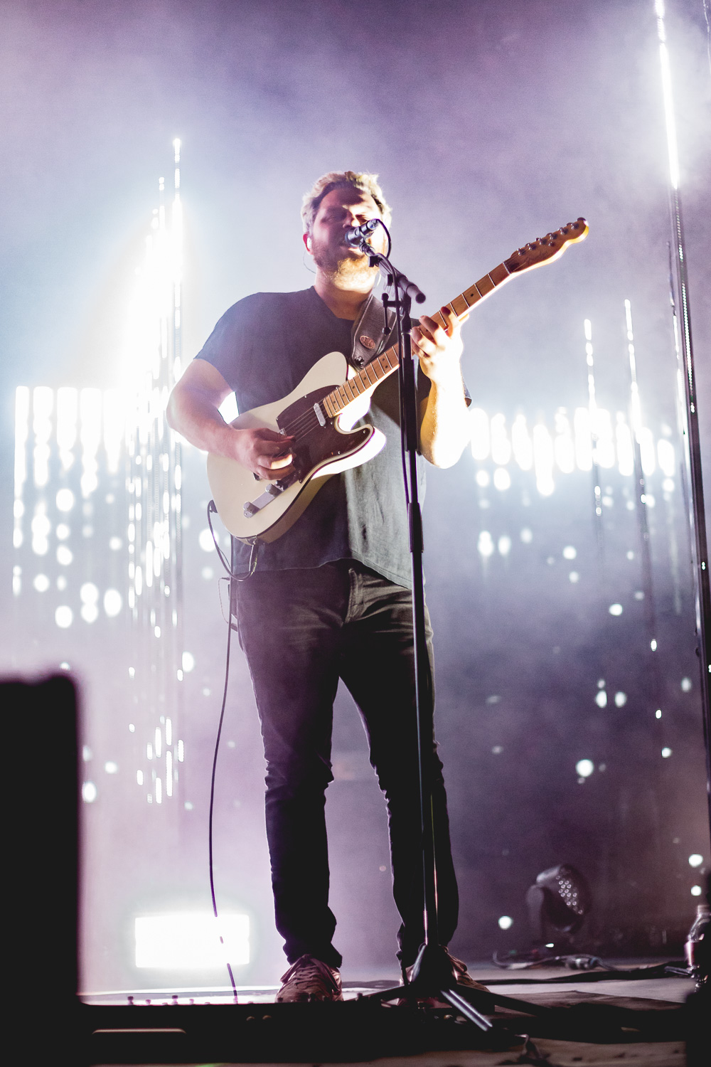 Now up to the stage, alt-J, the U.K.-born indie group that skyrocketed to popularity on this side of the pond, especially with their third album, Relaxer, released and tracks being featured in Hollywood hits such as Captain America: Civil War. Taking the stage to a tri-sectioned barricade of pulsing light towers, alt-J members Joe Newman, Gus Unger-Hamilton and Thom Sonny Green plant their feet and play their first track. Keeping with their established electronic base with the identifiable sound and vocals, alt-J play fan favorite hits such as “Breezeblocks” and “In Cold Blood,” and deliver a rare live performance that displays consistency in sound quality with their album sound. The entire house is pumping with energy, and if someone’s hands are not occupied taking a cell phone video, they’re in the air waving with the beat throughout the night.