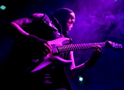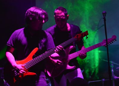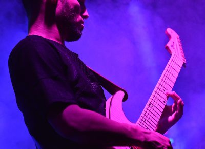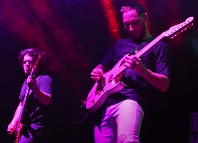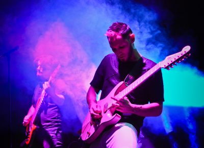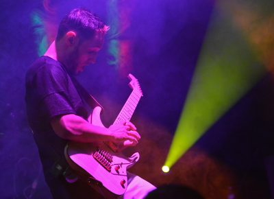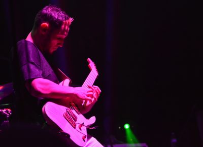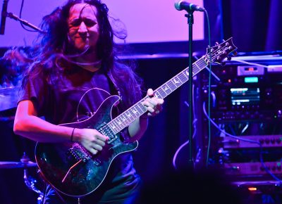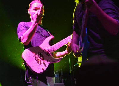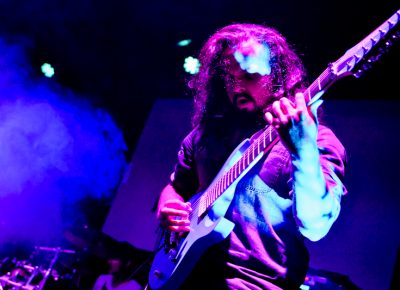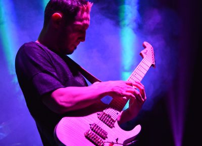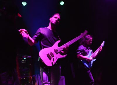 Angel Vivaldi was the final musician, and he started his set by playing an old Michael Jackson song, with appropriately choreographed dancing. As a longtime fan of his, I can honestly say that he is better live than his studio recordings—more so in that you can’t see him playing when you’re listening to the lightning fast “An Erisian Autumn”—it’s something that has to be witnessed. He puts his entire being into every single song, regardless of audience size. His performance is fantastic, and you know he’s having fun when he gets a quick manicure while still maintaining a melody. They ended the night with Andy James taking the stage with Vivaldi to play their new collaborative song, “Waves of Synergy,” with Letchford also joining in for a performance that’s reminiscent of the legendary original G3 Tour with Satriani, Vai & Johnson.
