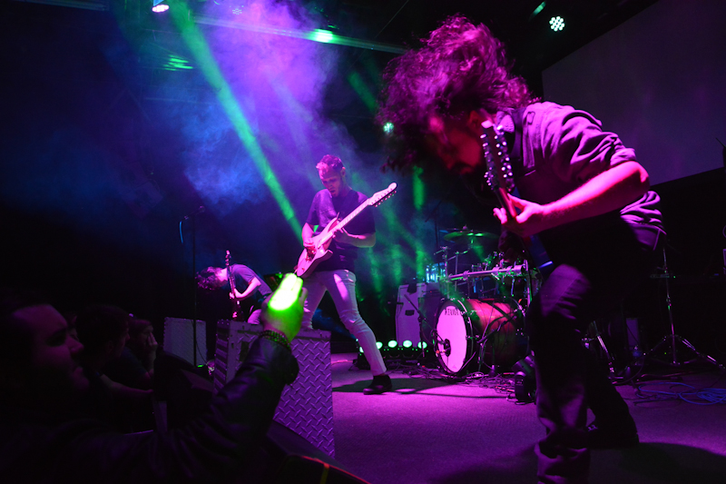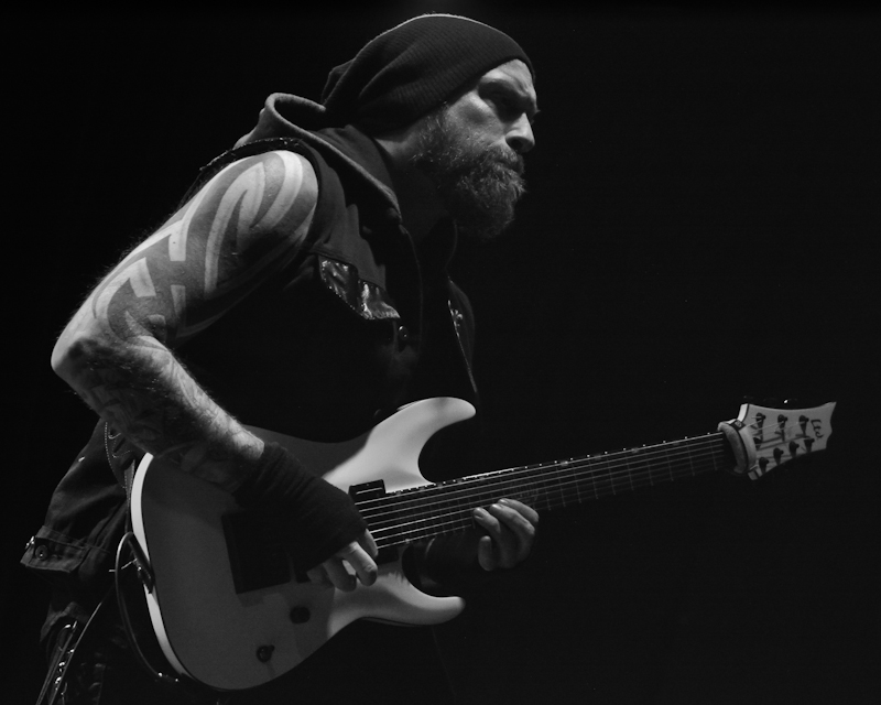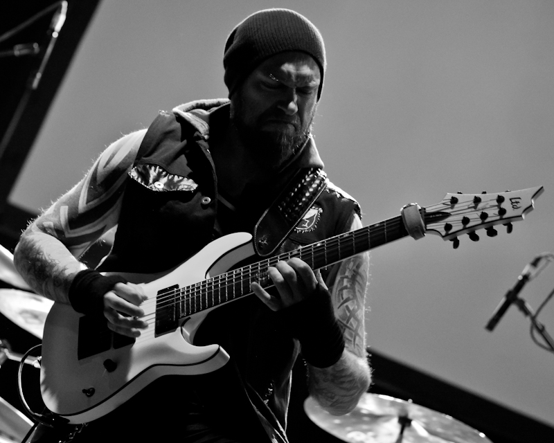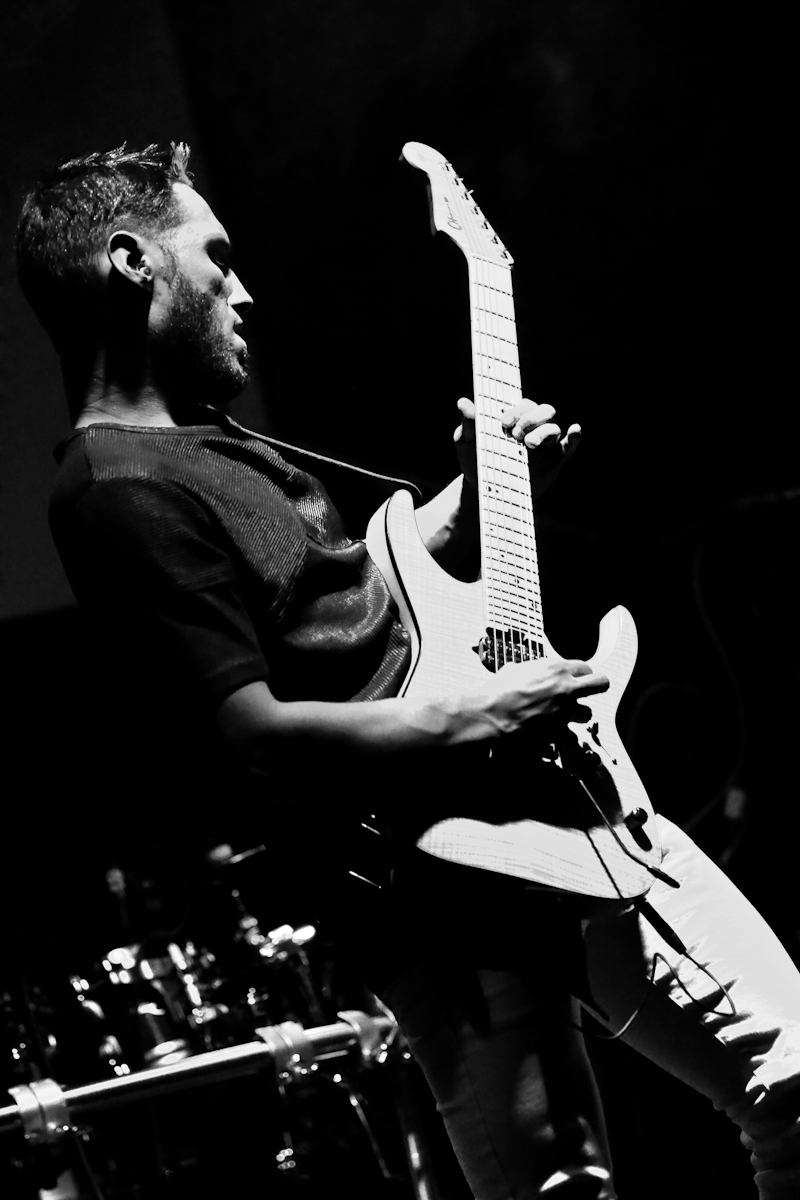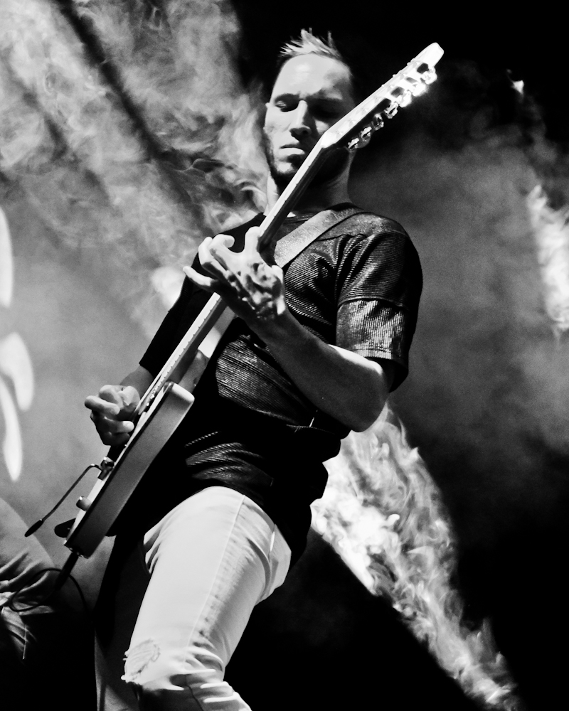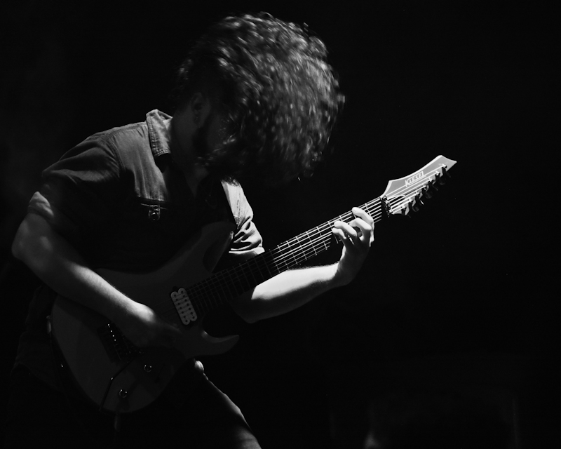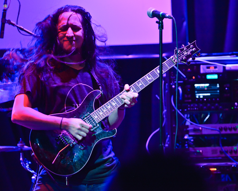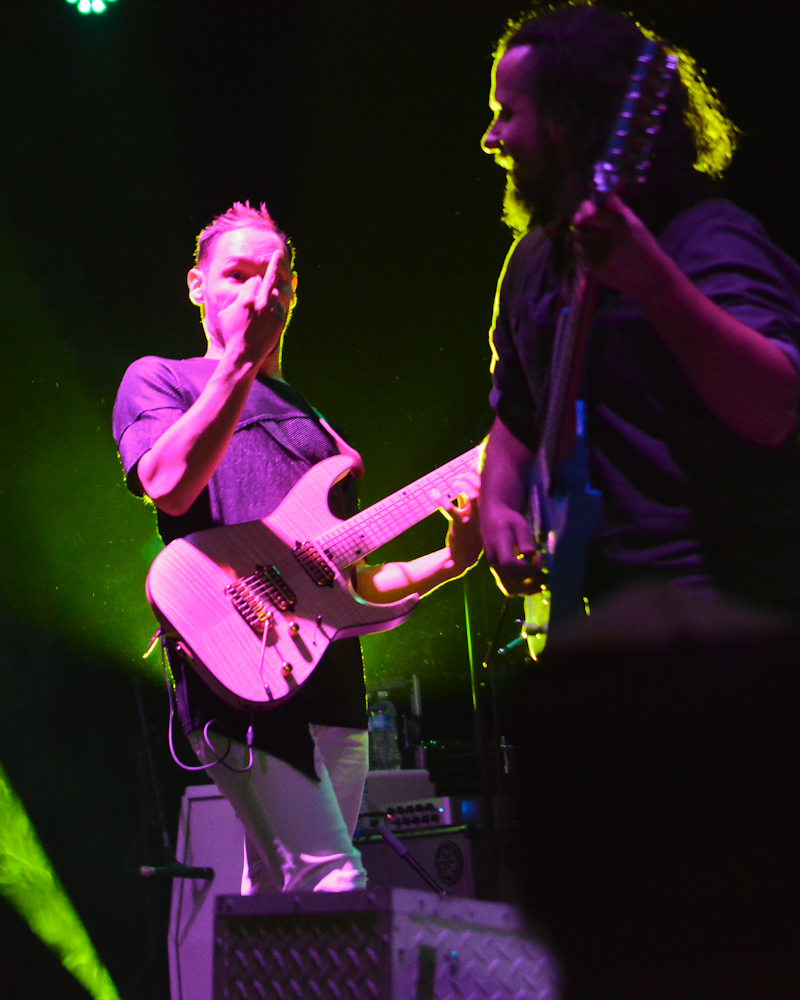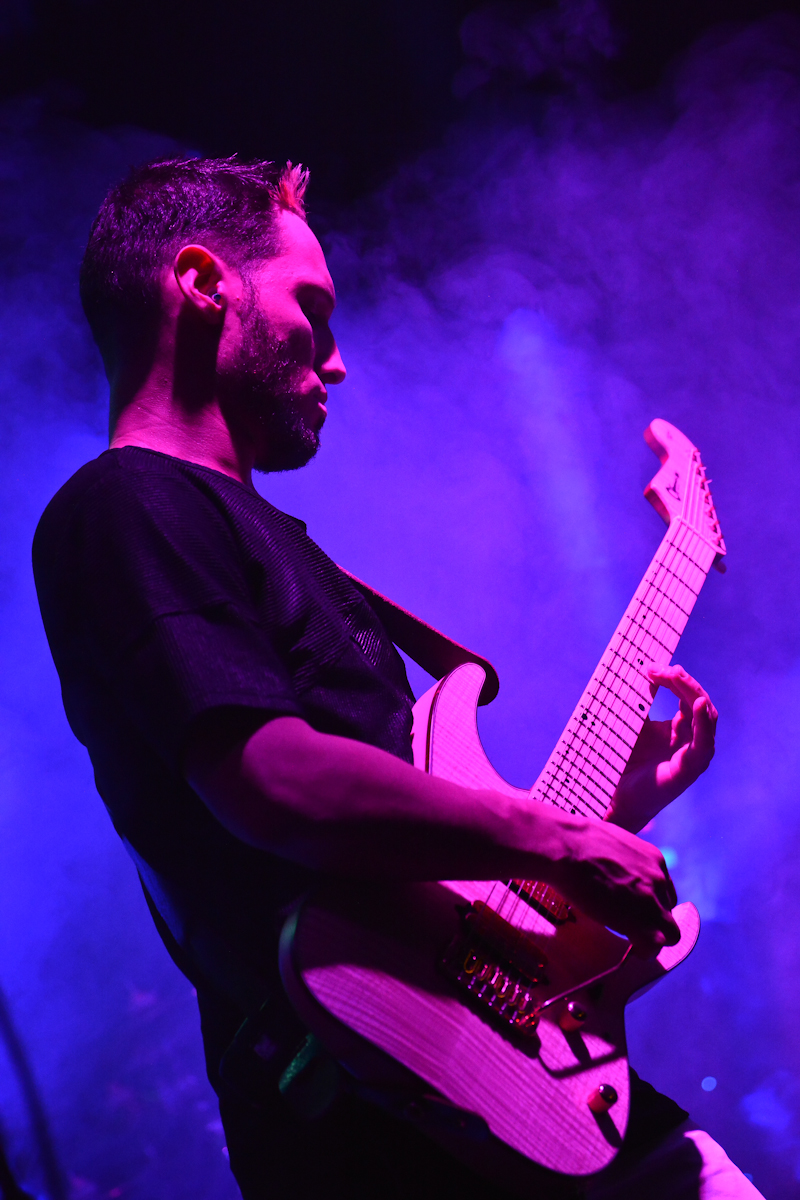 Scale the Summit was a big change, playing through complex rhythms and keys while guitarist Chris Letchford and bassist Kilian Duarte‘s contrasting playing styles kept the audience’s eyes roving. The band utilized a projector screen to back their songs with abstract video imagery (which also made shooting photos of the band nearly impossible). As a prog-rock outfit, their playing isn’t as much about how many notes can be fit into a bar; a lot of time changes and clever riffs abounded.