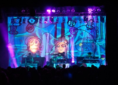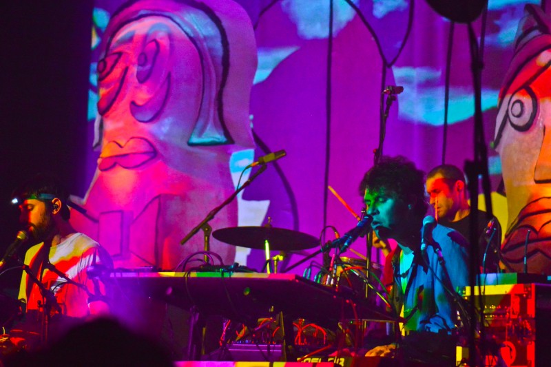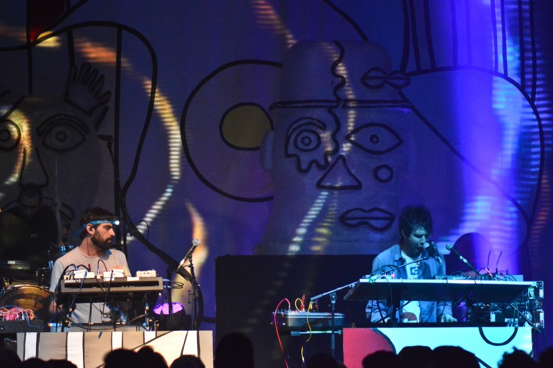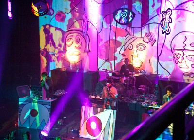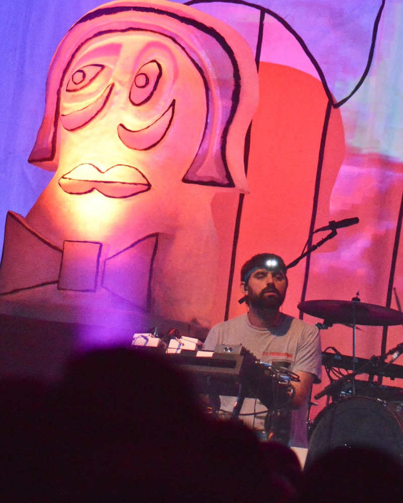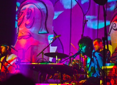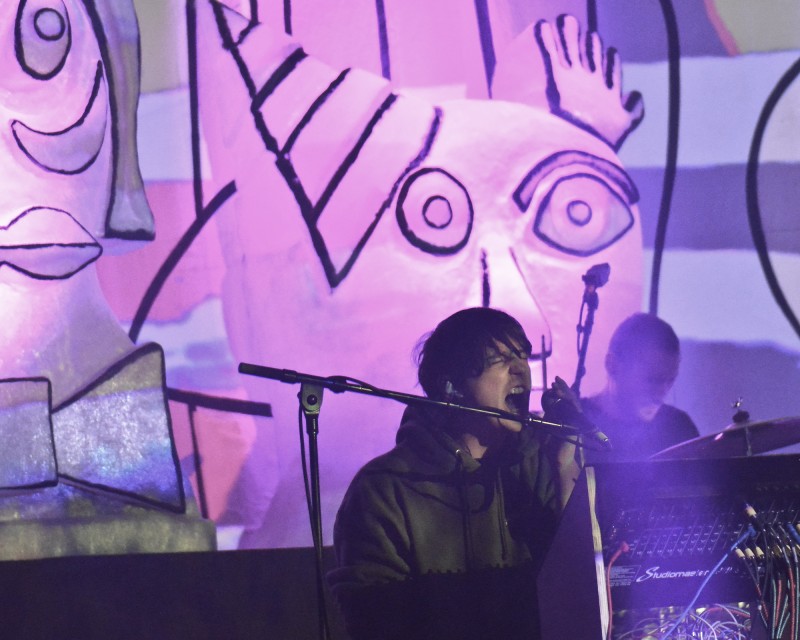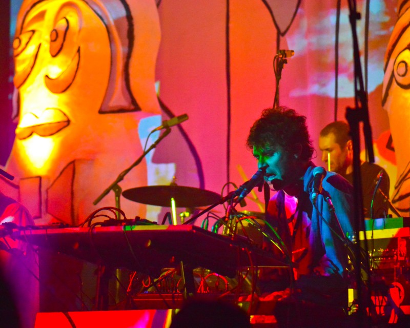 When Animal Collective took the stage, their decoration of the stage was full of garish, whimsical statues and paintings. As the music started, the stage was lit with a cornucopia of light effects and designs. With one drummer, the other performers each had their own station that was loaded with computer boards, various pedals and a spaghetti explosion of wires coming off the table. Each song they performed had multiple layers to it, and while there were two to three singing simultaneously, they weren’t necessarily harmonizing or backing each other. Each voice had complexity and complemented the overall sound of the band. Labeled as “experimental pop,” they definitely fit the definition, as their songs featured strange timbre and meter, and didn’t always follow any real structure. Enthusiastic ’til the end, Animal Collective played a great set and were lavished with a warm reception from the audience.