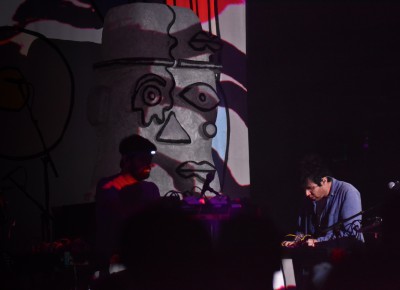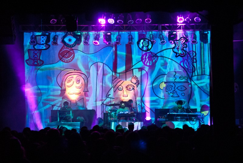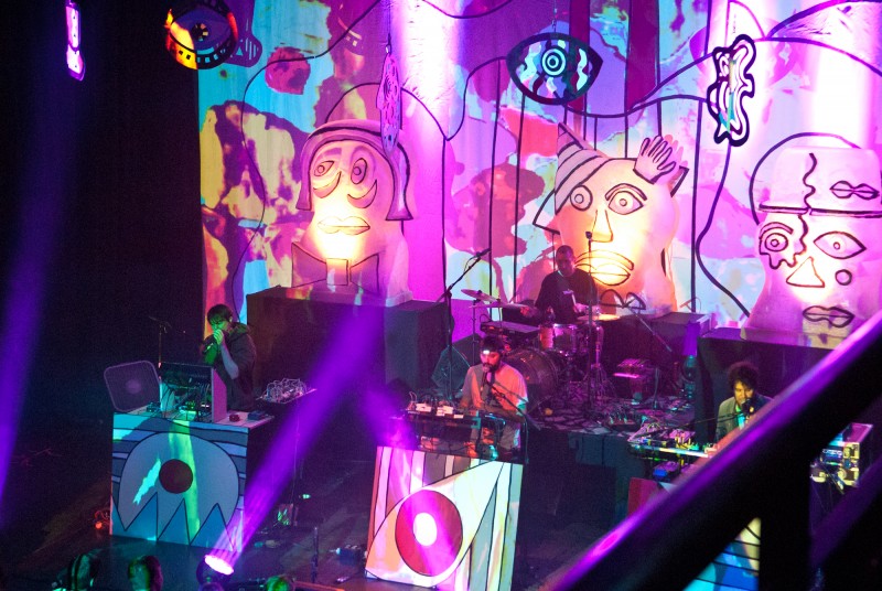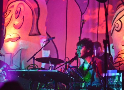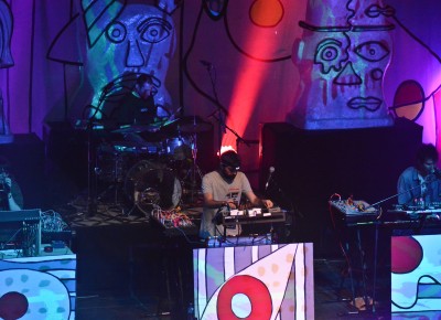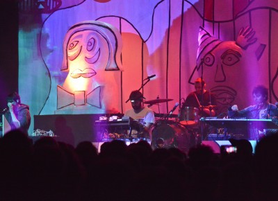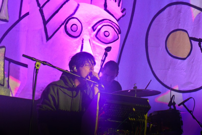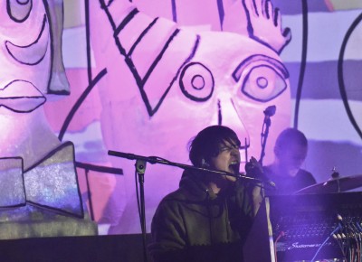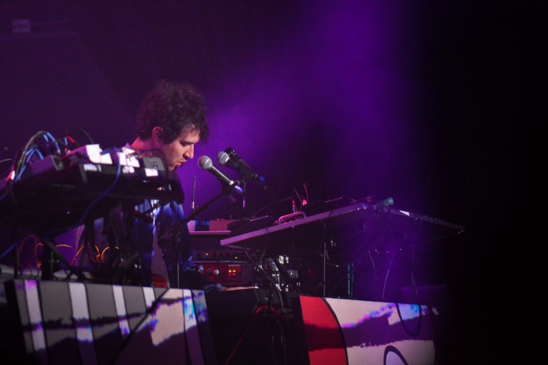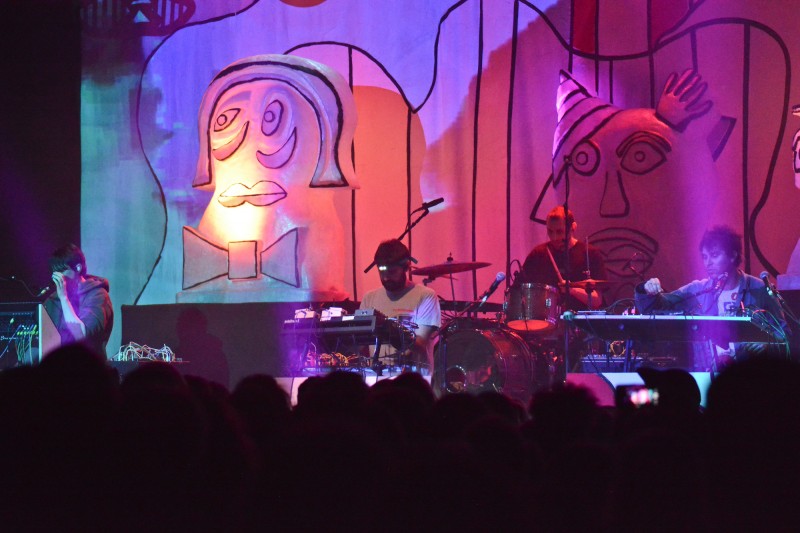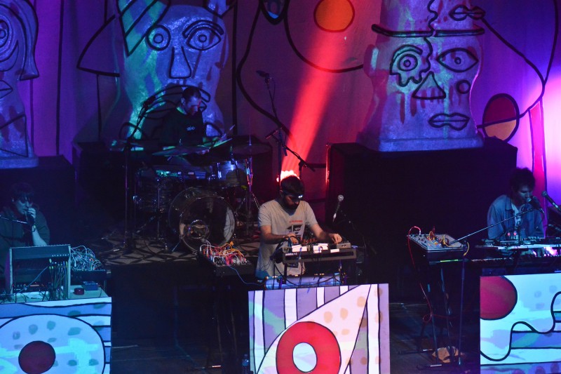 When Animal Collective took the stage, their decoration of the stage was full of garish, whimsical statues and paintings. As the music started, the stage was lit with a cornucopia of light effects and designs. With one drummer, the other performers each had their own station that was loaded with computer boards, various pedals and a spaghetti explosion of wires coming off the table. Each song they performed had multiple layers to it, and while there were two to three singing simultaneously, they weren’t necessarily harmonizing or backing each other. Each voice had complexity and complemented the overall sound of the band. Labeled as “experimental pop,” they definitely fit the definition, as their songs featured strange timbre and meter, and didn’t always follow any real structure. Enthusiastic ’til the end, Animal Collective played a great set and were lavished with a warm reception from the audience.