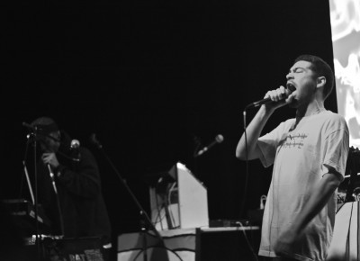 Opening the evening was rap group Ratking out of New York City and featuring rapper/producers Wiki and Sporting Life. While their start was a little uncertain, both men hit their stride by the third song and delivered their lyrics with energy and conviction. Unlike more mainstream rap, Ratking chooses to utilize multi-layered beats and a variety of sounds to create the fabric of their music. Their set was filled with songs reflecting on life, and its difficulties, and both Wiki and Sporting Life were very lively in their delivery – you could tell that their words came from the heart. At the end, Wiki left the stage and Sporting Life freestyled on his setup, producing technical beats and heartbeat deep bass.