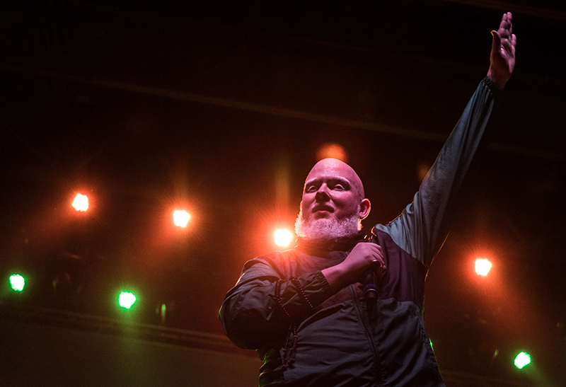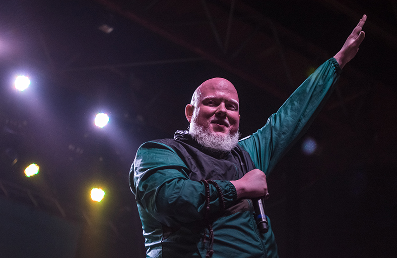 Brother Ali, next on the lineup, attracted many loyal fans to this September evening’s concert. Ali’s history of playing Salt Lake has created a wide set of dedicated people who follow the rapper’s expressive, poetic music. “Truth Is,” an ode to honesty, had the entire room singing along. Ali’s conscious slam poetry, featuring his son, expressed deep emotions about current events involving police brutality and the impact that these altercations have on the entire community. Brother Ali’s finale brought the energy in the room to a new level, building the foundation for Atmosphere’s upcoming performance.