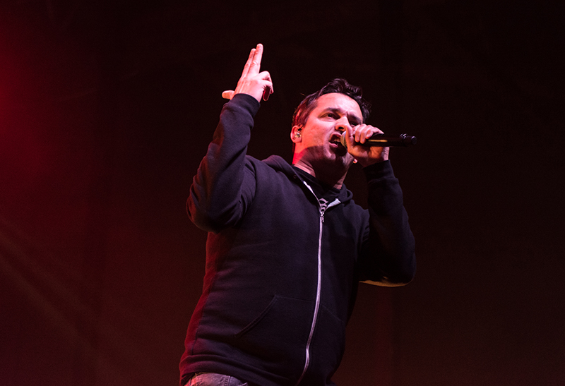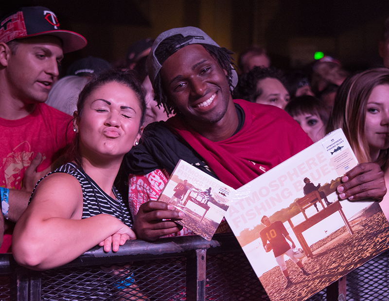 For as long as I can remember, Atmosphere have been rocking the Salt Lake City music scene with innovative hip-hop beats. Friday night’s concert at The Complex was just one of many stops on the Freshwater Fly Fishermen Tour, which celebrates their new release, Fishing Blues. This 18-song album features artists such as deM atlaS, The Grouch and Kim Manning, among many other likeminded artists. Leading up to the concert, a crowd of all ages gathered outside The Complex. One by one, fans quickly made their way to the front of the stage to grab a good spot to take in the show. Many of those of legal age were able to chill in the 21 and over bar, watching the performance from multiple live-feed TVs.