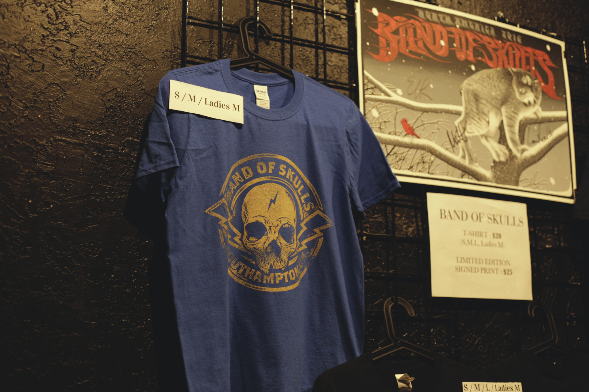 Band of Skulls tour merchandise availalble in all different sizes. Photo: Logan Sorenson @Lmsorenson