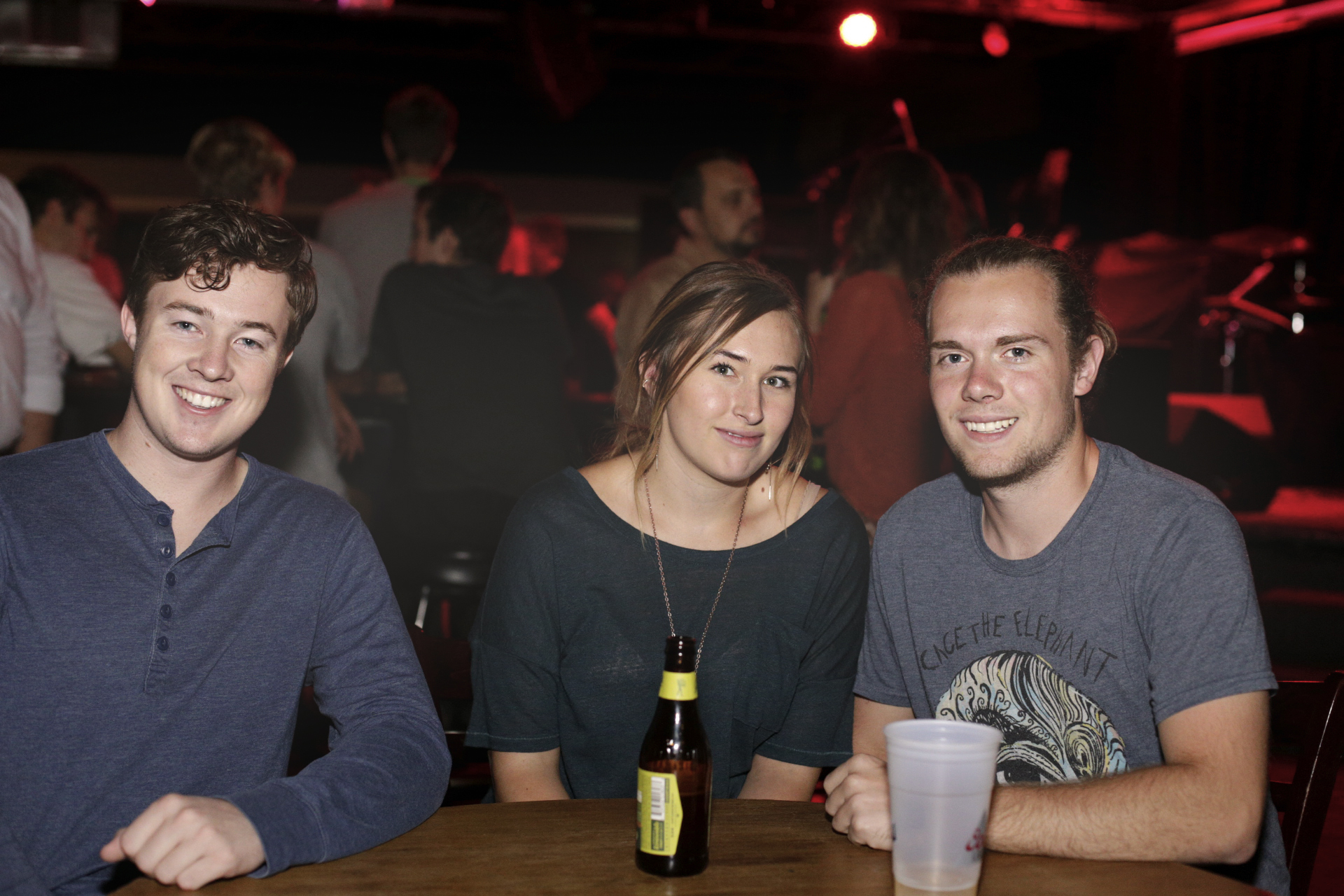 Nick Mayberry, Ally Perry and Mason Maag casually hang at a table while the set changes. Photo: Logan Sorenson @Lmsorenson