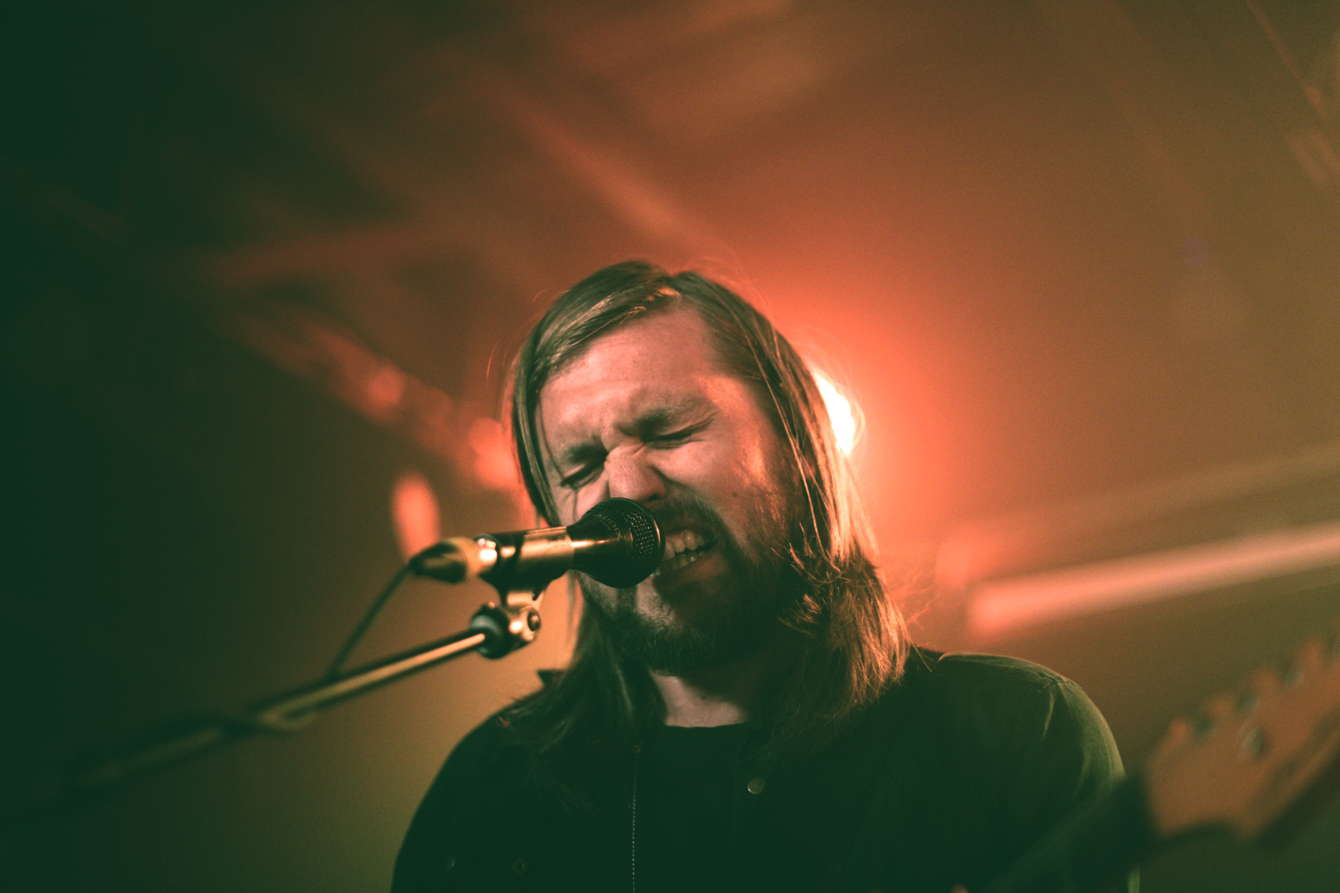 Russell Marsden singing in the middle of “I Know What I Am,” a fan favorite from Band of Skulls. Photo: Logan Sorenson @Lmsorenson