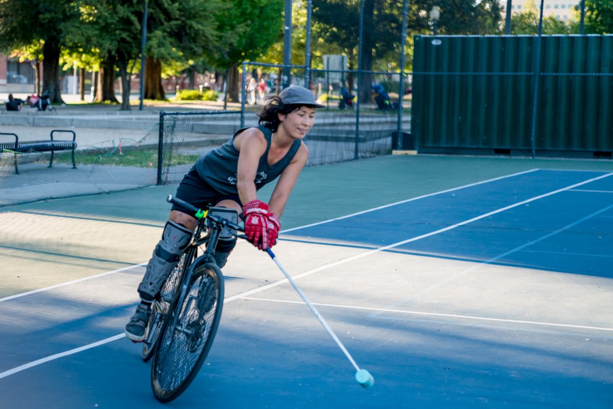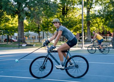 The Beehive Bike Polo Club consists of around 25 members and has been growing over the past two to three years. During meet-ups, those who aren’t playing socialize, barbecue and play with their dogs. Although Bike Polo games are mostly for easygoing social playtime, a few of the members do compete in bike polo games around the world. The Beehive Club plays year-round, almost every Tuesday, Thursday and Sunday. For a few hours, they play in parking garages downtown during the winter and in Pioneer Park year-round. The club is pushing hard for official courts.