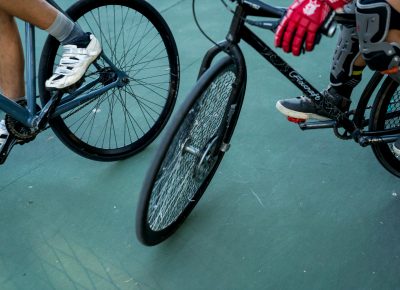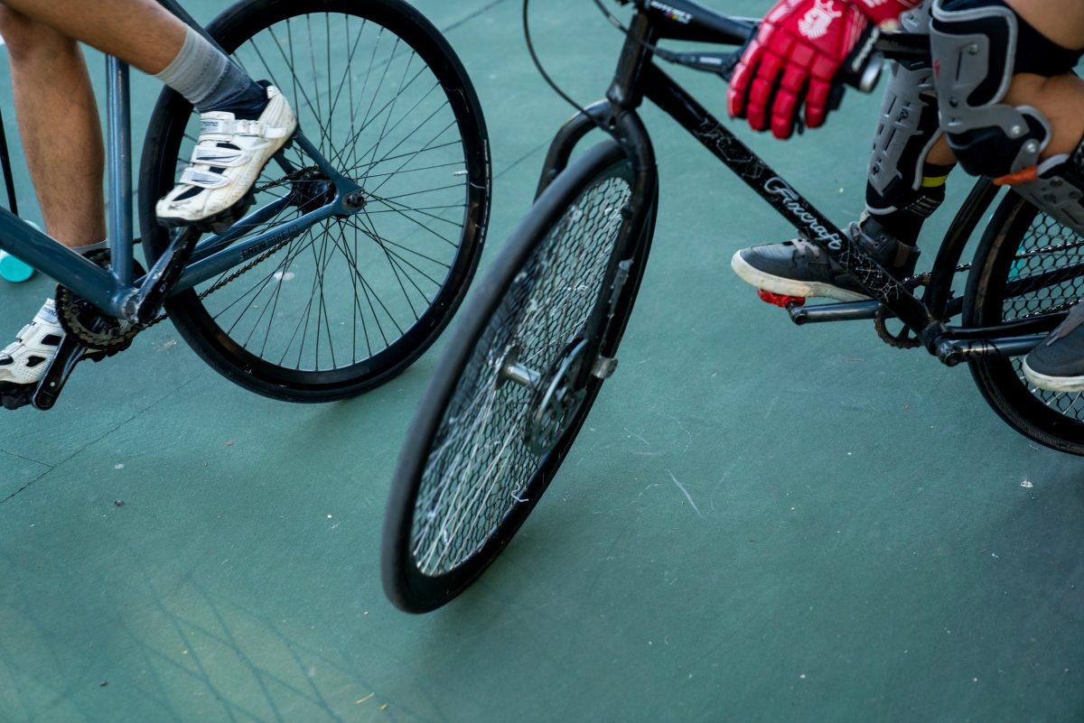 A brief history and synopsis of Bike Polo: Originally, it began in the late 1800s, spawning from horse polo. Its playing field was initially grass, and in the last decade, it transitioned to hard courts. Typically played by two teams of three, the games last for 12 minutes, or until a team reaches five points. One-point goals can be shot by hitting the ball with the back of the mallet, and the player must stay on the bike at all times. If feet touch the floor, the rider must go to the middle of the court to tap back in.