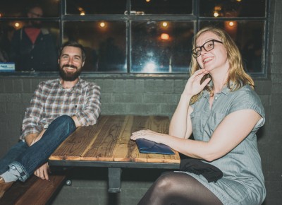 (L-R) Chris and Anna Brozek of Big Cartel hang out outside Publik on the tables Publik recently added. Photo: @clancycoop