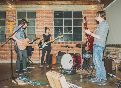 (L-R) Jessica, Anthony and Mario Hernandez posing before Color Animal started their set. Photo: @clancycoop