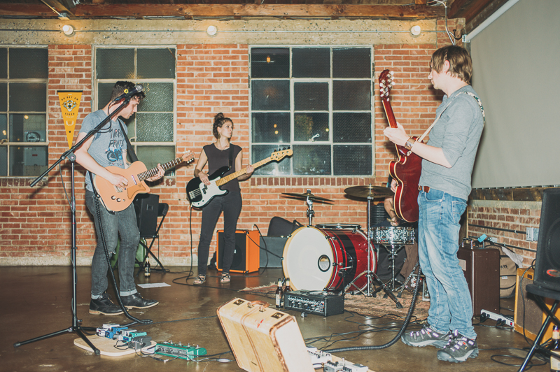 (L-R) Brian Lord and Cody Kirkland (SLUG writer!) chillin’ with Tyler Ford and Felicia Baca of Color Animal before their set. Photo: @clancycoop