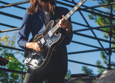 Traveling rhythm guitarist for Father John Misty rocks the Ray Bans while crushing the strings Thursday night. Photo: Talyn Sherer