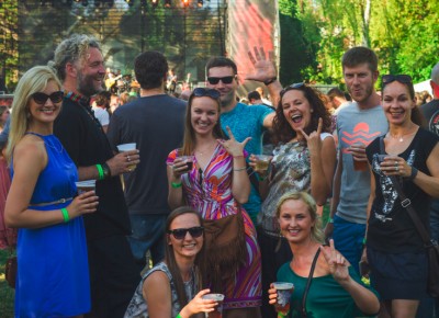 A group of friends gather together for a quick photo before their return to their drinks and the show. Photo: Talyn Sherer