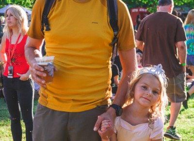 (L–R) Father Nate Thesing and his daughter Princess Etta Thesing pose for a quick photo before going to watch Black Rebel Motorcycle Club perform. Photo: Talyn Sherer