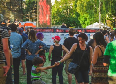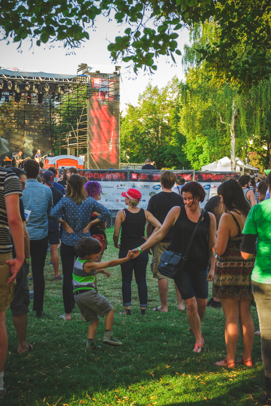 A mother and her son dance in the shade as Father John Misty plays in the background. Photo: Talyn Sherer