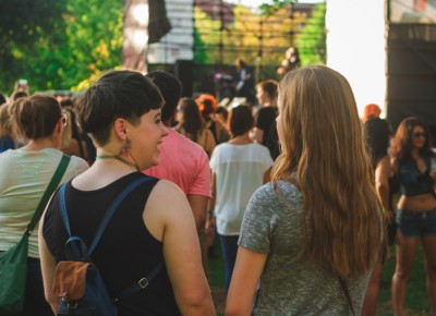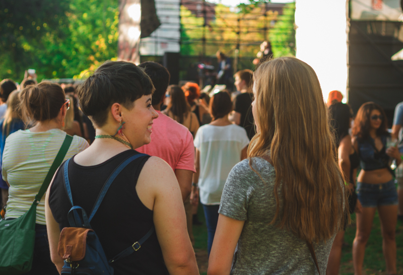 Two friends watch Father John Misty perform from a distance. Photo: Talyn Sherer