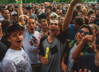 During intermission a serious bubble event took place in the crowd getting people really excited about the bubble popping experience. Photo: Talyn Sherer