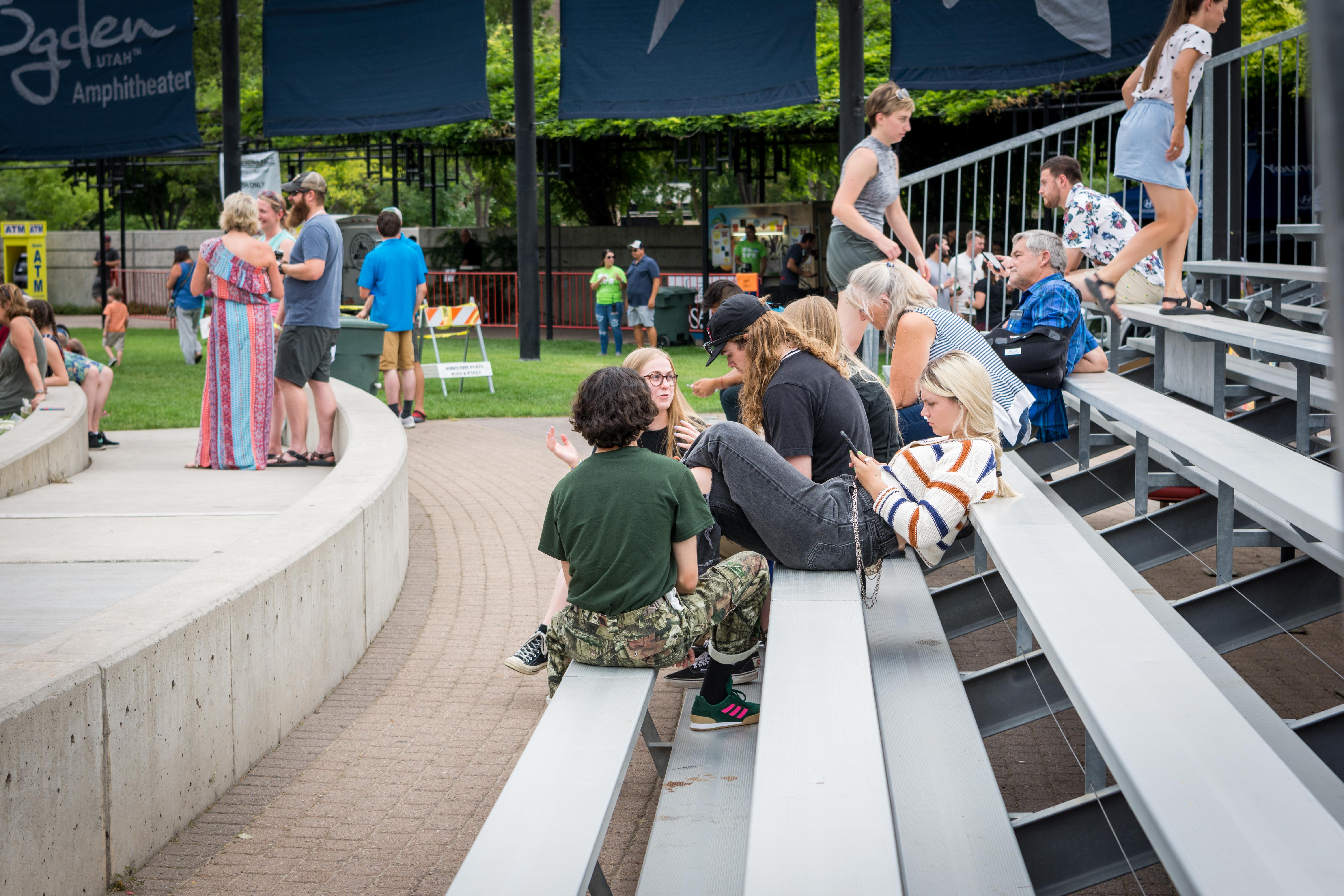 Sitting on the second level of UTA’s Front Runner, Twilight fans enjoyed a stress free commute to Ogden. The 50 minute-long ride was a great place to chat with friends, surf the web, or take a quick nap. Four blocks from the amphitheater, the journey from the Ogden train station to the venue was filled with awesome bars, local restaurants and old, historical architecture. The historic 25th Street has been a transforming, up-and-coming area to hang out in. As fans flocked in, the clouds in the sky gathered, building up to an eventful night.