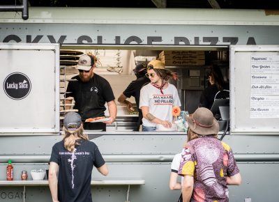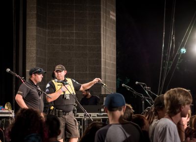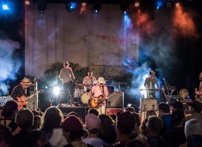 As the sun faded in the night sky, Broken Social Scene joined the stage. Opening with “KC Accidental” off their album You Forgot It in People, the large band started off with a bang. Playing awesome tunes like “Texico” and “Hugs of Thunder,” they performed an awesome show. Lightning struck in the distance as the band began the first melodic notes of “The Sweetest Kill.” Reaching the first verse that sings “I thought you were the sweetest kill …” Kevin Drew stopped singing and began discussing the approaching storm. He continued to sing, but was soon stopped by local law enforcement and forced to delay the show. Fans streamed out of the venue and into the streets of Ogden, hoping to return 20 minutes later. Unfortunately, the show was canceled because of the threat of lightning. Instead, we hung out at Brewski’s, eating pizza and drinking cold beer. The storm seemed to come close, but never close enough to feel like a threat. There was a melancholic tone to the night initially, but fans gathered in their joint sadness and enjoyed the night with Broken Social Scene’s company at Brewski’s late into the night.